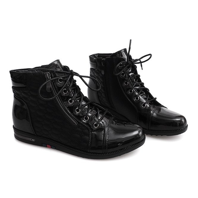 Ce modèle se distingue par son élégant coloris noir et sa fermeture pratique - des lacets et une fermeture éclair latérale qui facilitent son enfilage. Grâce à la plateforme basse de 2 centimètres en matière synthétique, les porter est un pur plaisir.