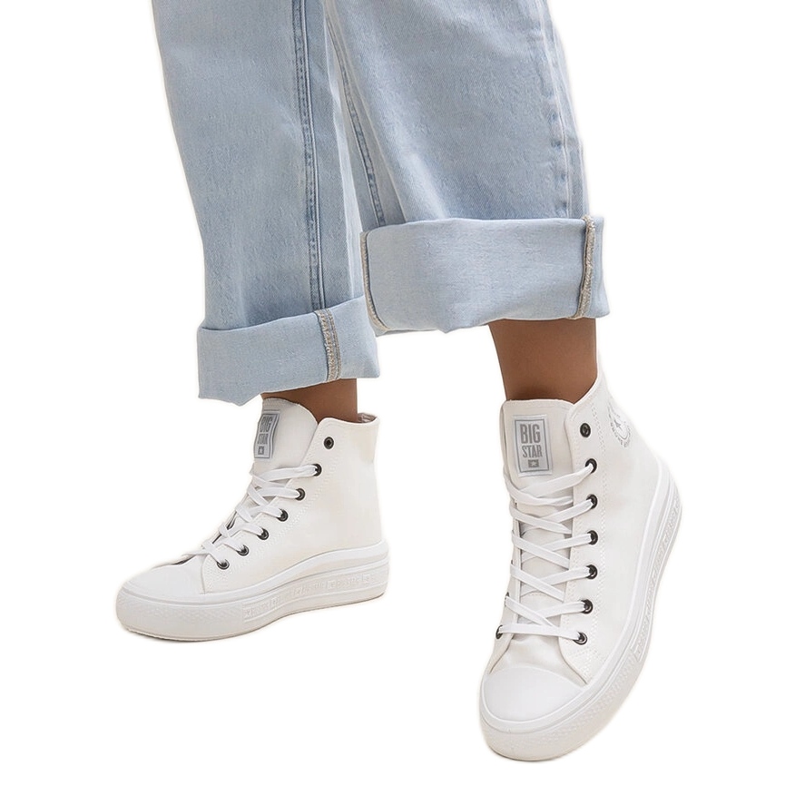 White High Sneakers Big Star LL274A183 est une proposition idéale pour les femmes qui veulent combiner un look à la mode avec le confort chaque jour. Caractérisées par un design moderne, ces baskets se distinguent par un orteil rond et des performances de tissu soigneuses, ce qui assure une durabilité et un confort d'usage adéquats. Grâce à l'utilisation d'une semelle en caoutchouc, les chaussures absorbe parfaitement toutes les étapes, et la fixation lacée permet un ajustement individuel à la forme du pied.