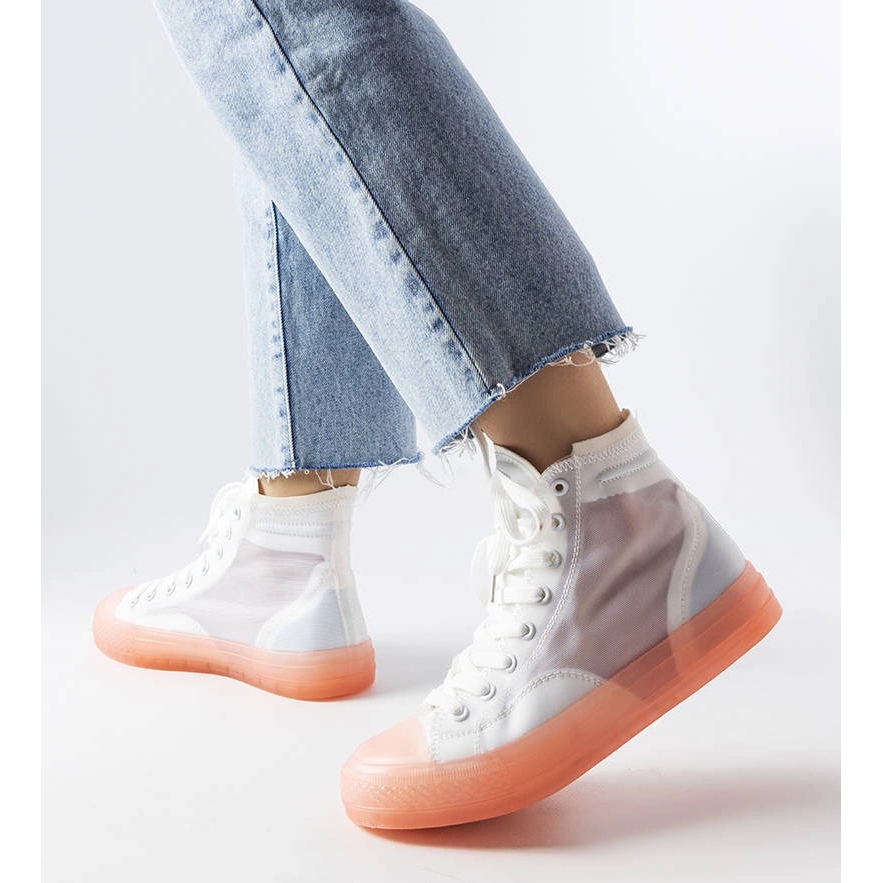 Les baskets d'été élégantes et Nanterre combinent un accent classique et un accent féminin grâce à la tige blanche et à une semelle rose. Haute, dentelle -up, avec un nez rond - parfait pour les stylisations urbaines quotidiennes.