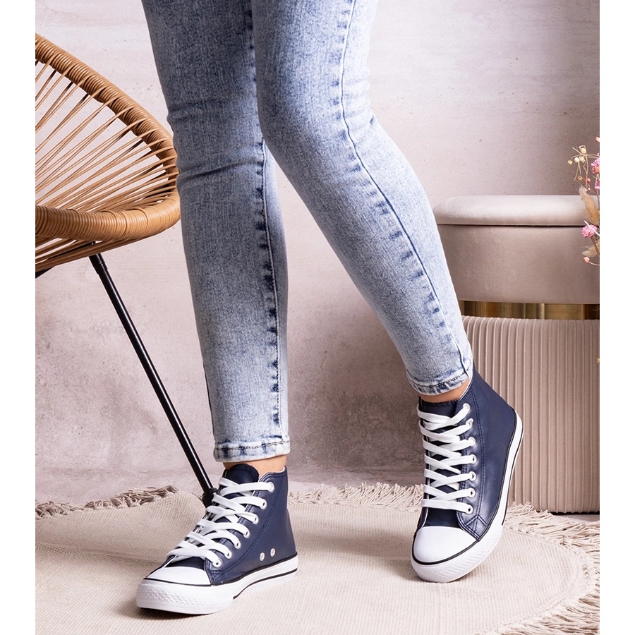 - Modèle: B262 Baskets montantes bleu marine en éco-cuir