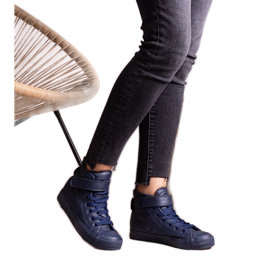 - Modèle: B361 Baskets montantes bleu marine en éco-cuir