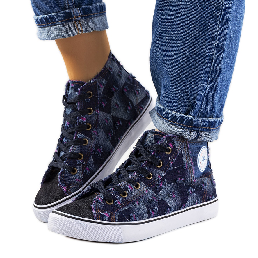 Les baskets montantes bleu marine modèle Lewis sont un choix parfait pour les femmes qui apprécient l'originalité et le design à la mode. La tige est faite d'un matériau de haute qualité ressemblant à un jean, avec de délicates abrasions dans une subtile nuance de rose, ajoutant un caractère unique aux chaussures. Ce modèle s'adapte à une variété de styles, du décontracté au légèrement plus élégant, vous permettant de vous exprimer librement.