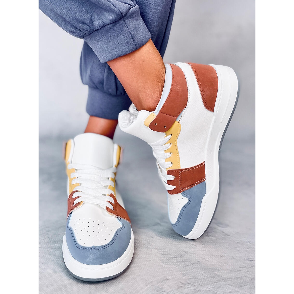 Élégant, universel et confortable - les chaussures de sport bleu Clowsi sont une proposition pour les femmes qui apprécient chaque jour une simple coupe et réconfort. Modèle, cheville, en cuir écologique colorant blanc avec des accents multi-colorants. L'intérieur bordé de tissu doux offre un confort tout au long de la journée.