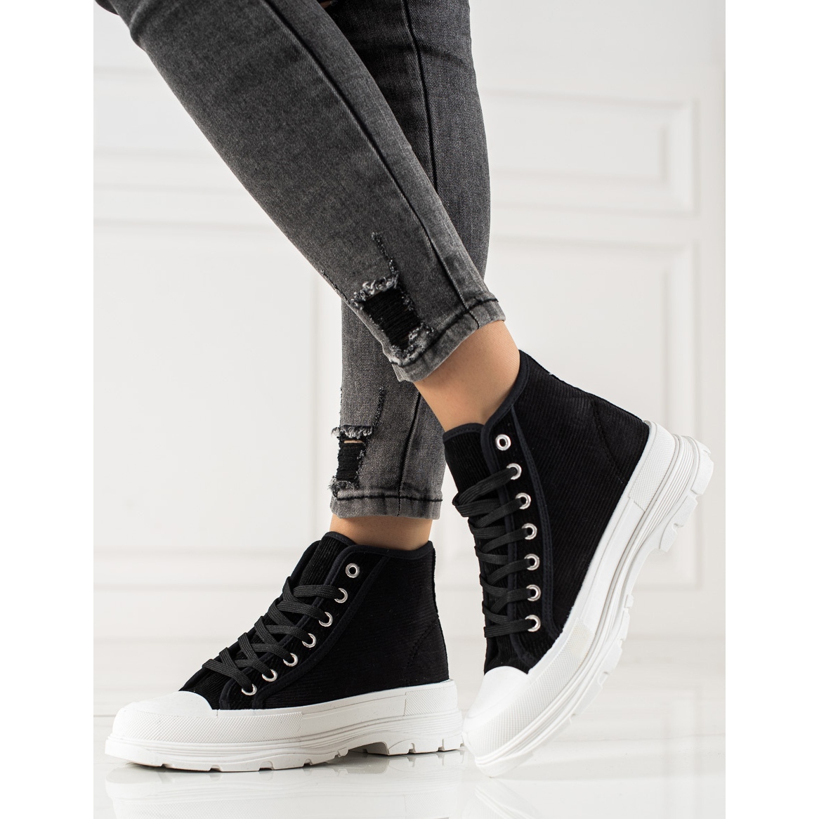 Découvrez les baskets hautes en daim noires de Sweet Shoes - une proposition parfaite pour les femmes qui apprécient la mode et le confort. Ces baskets extrêmement stylées allient un caractère sportif et décontracté, parfaites pour un usage quotidien.
