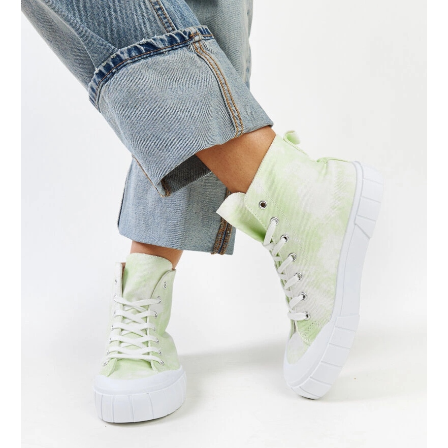Grâce au design élevé, ces baskets se mélangent parfaitement avec les stylisations d'été et de printemps, ce qui en fait un incontournable dans la garde-robe de chaque femme. Leur semelle blanche combinée à une tige verte crée un contraste attrayant qui attirera certainement les looks.