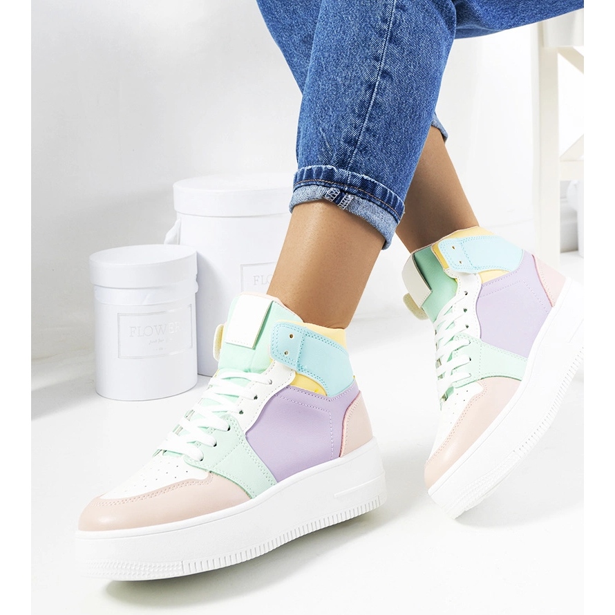 Classic et en même temps Avant-Garde - ces baskets violettes à la cheville attiraient dès le premier moment. La grande semelle blanche et une plate-forme surélevée (4,5 cm) ajoutent un caractère sportif et mince optiquement la figure. Une tige en cuir écologique dans une nuance pastel de violet va bien avec les stylisations estivales et urbaines.