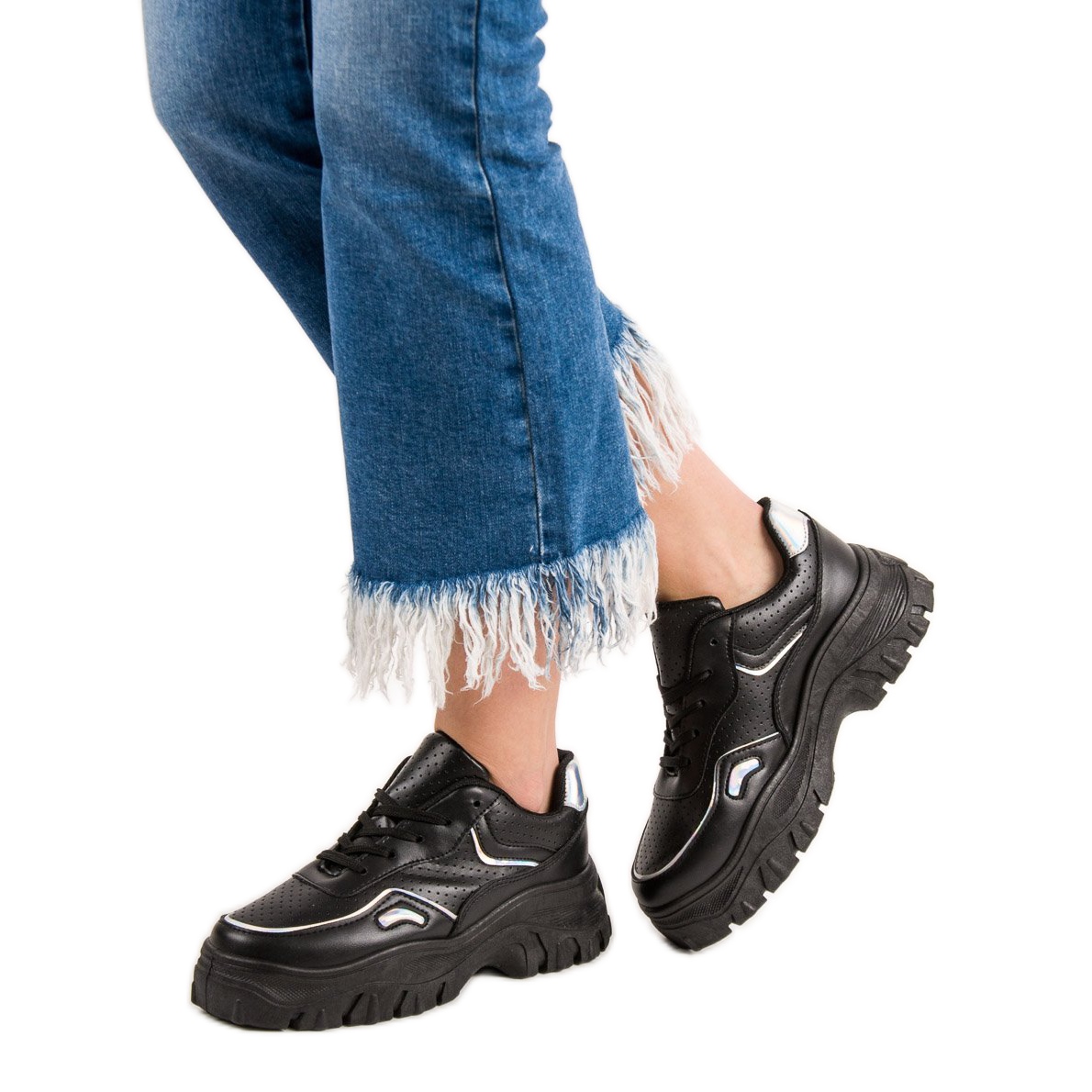 Découvrez un style et un confort uniques avec les baskets noires pour femmes SHELOVET aux accents holographiques accrocheurs. Ces chaussures originales enrichiront parfaitement votre garde-robe de tous les jours en y ajoutant un caractère moderniste.