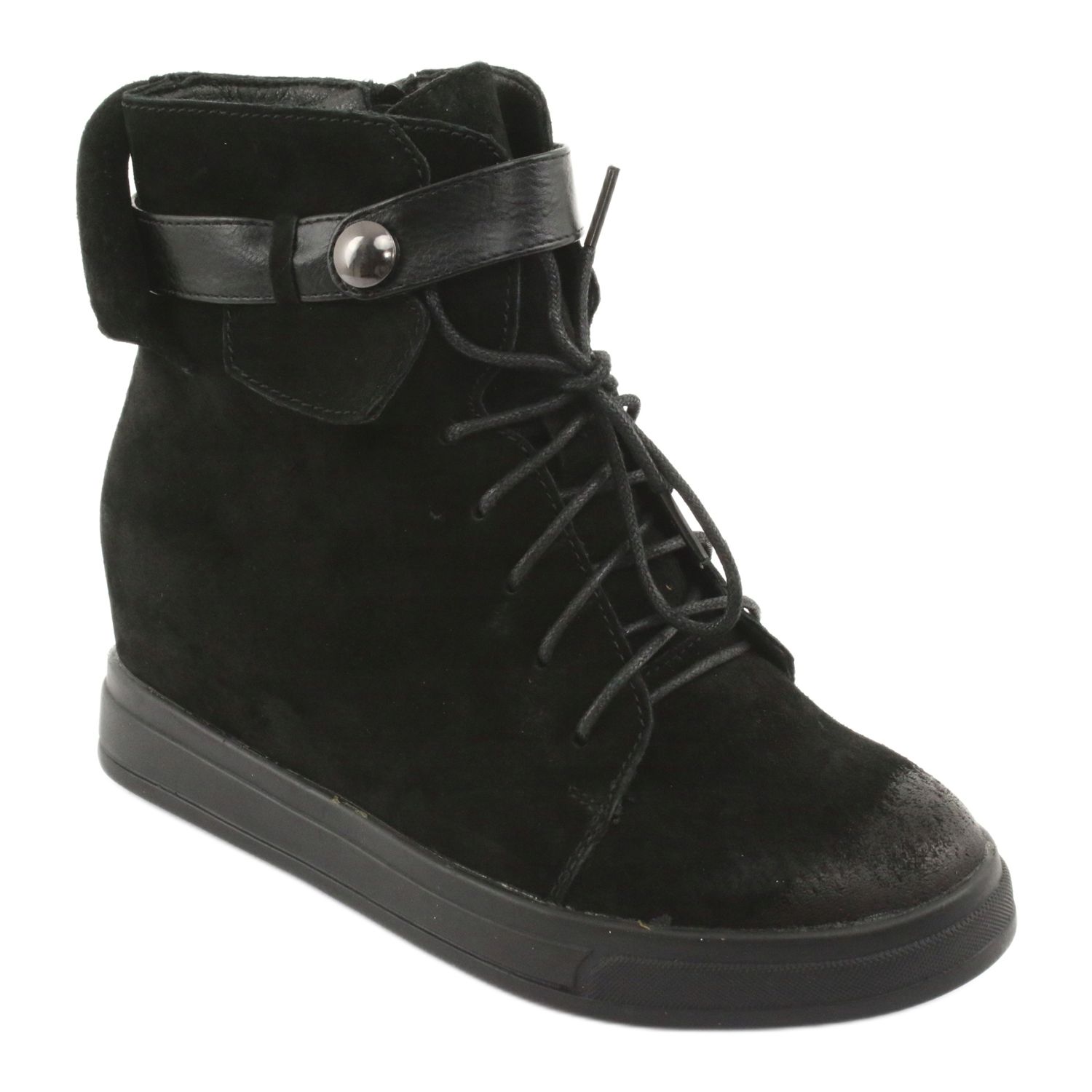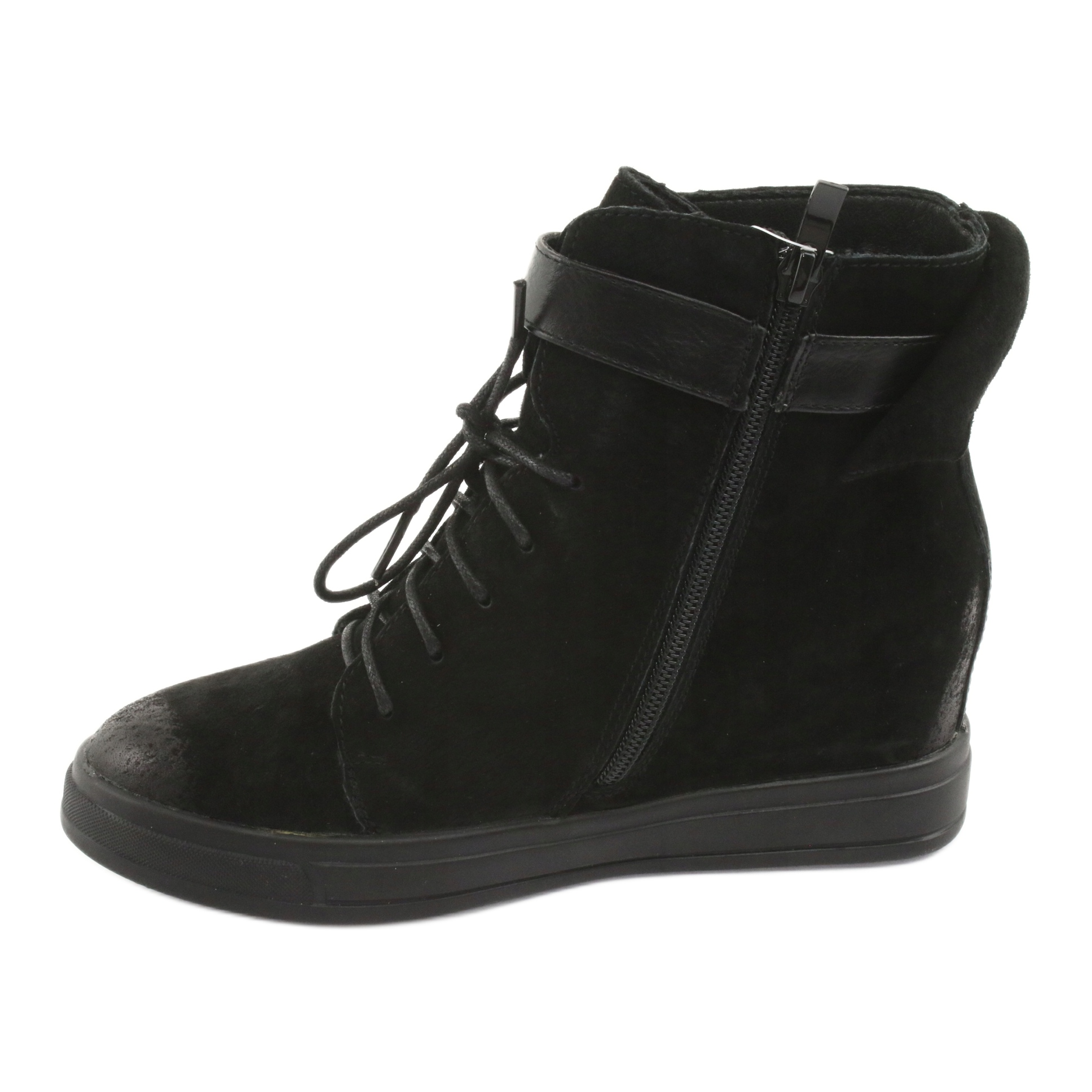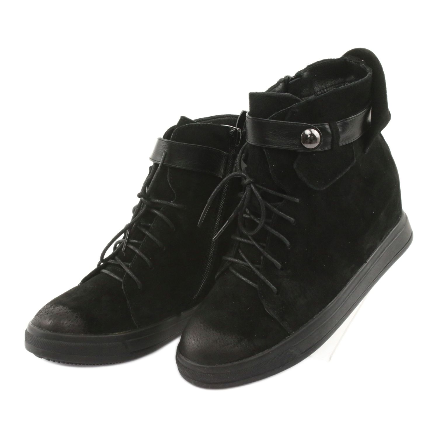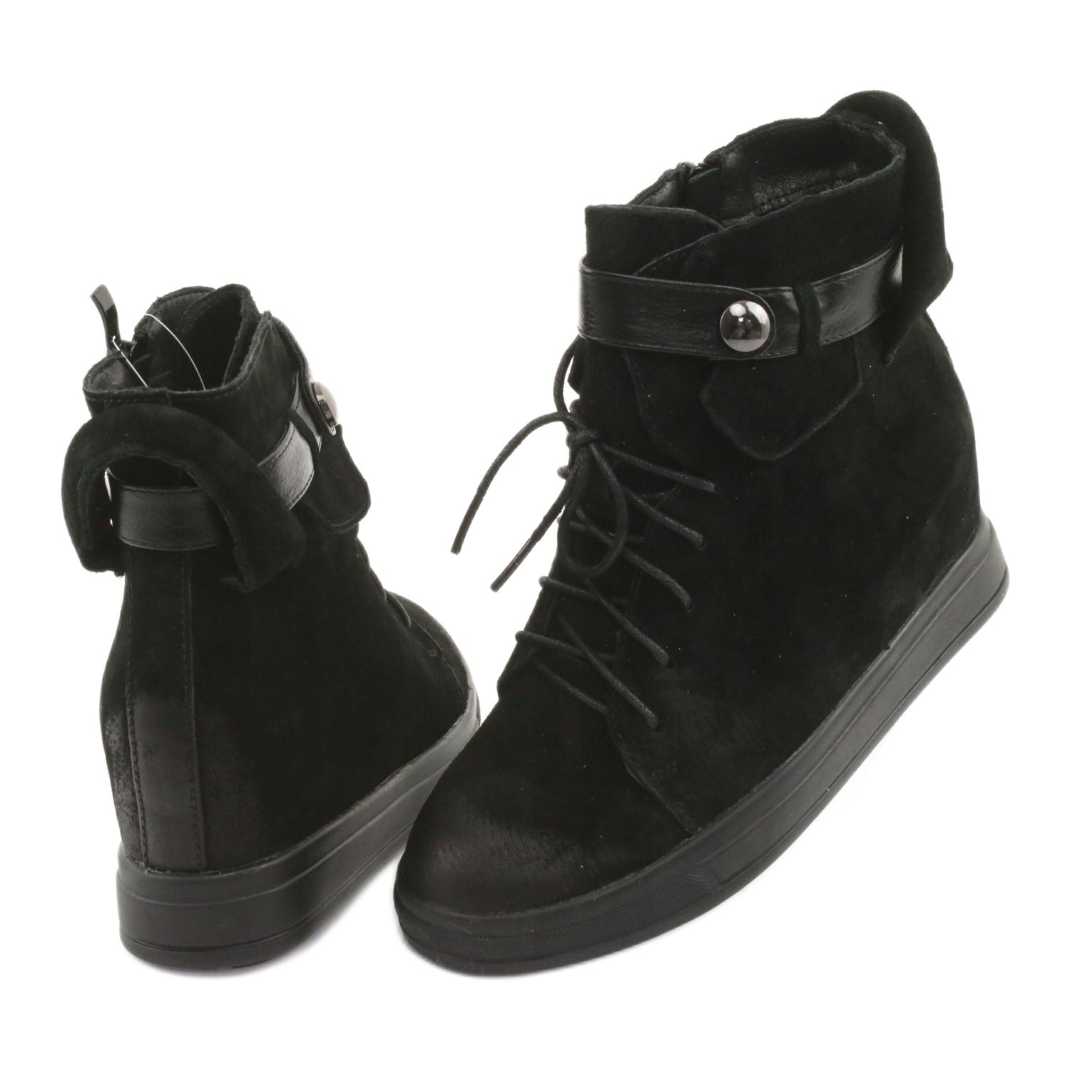 Les baskets noires à fermeture éclair de M.Daszyński sont le choix parfait pour les femmes qui souhaitent allier confort et style à la mode. Ces bottes en cuir suédé uniques se distinguent par leur aspect élégant et s'intègrent parfaitement dans une variété de styles, du quotidien aux plus formels.