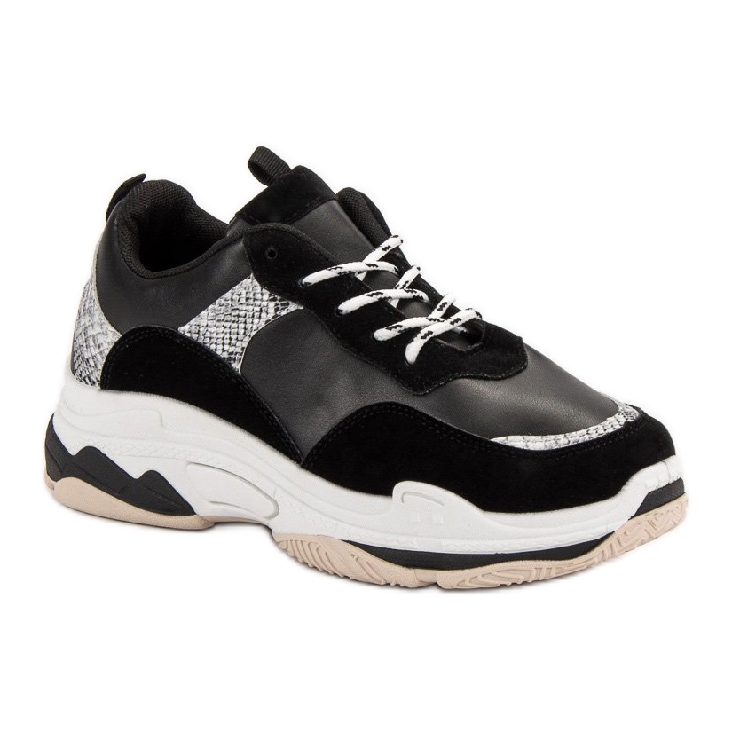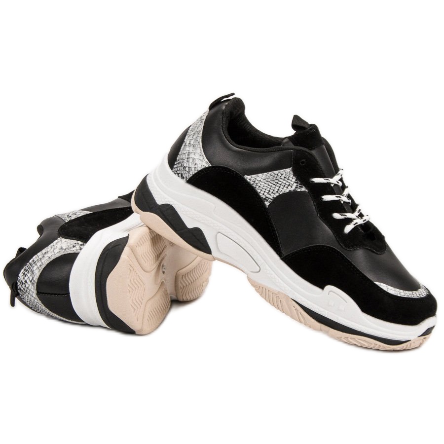 Les baskets noires avec un motif sont des chaussures parfaites au quotidien qui complèteront avec succès les styles sportifs et décontractés. Parfaits à porter au printemps, en été, en automne et en hiver, ils sont un incontournable de la garde-robe de chaque femme. Choisissez ces baskets et profitez d'un look tendance et d'un confort à chaque pas !