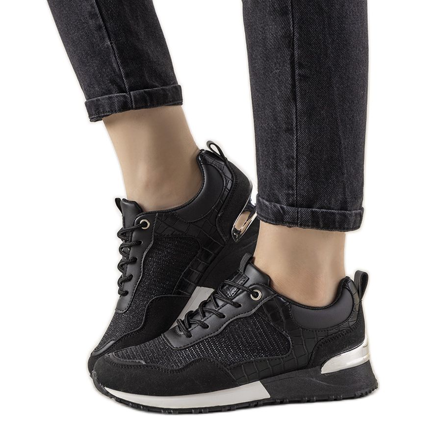 Sneakers noirs Zariza avec un motif de peau crocodile - style et commodité tous les jours