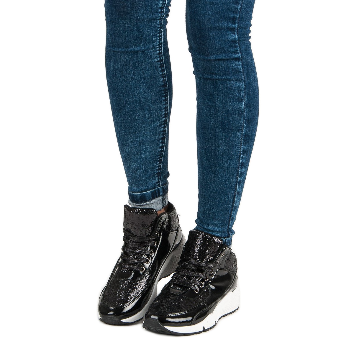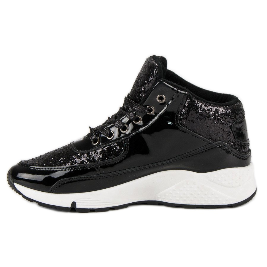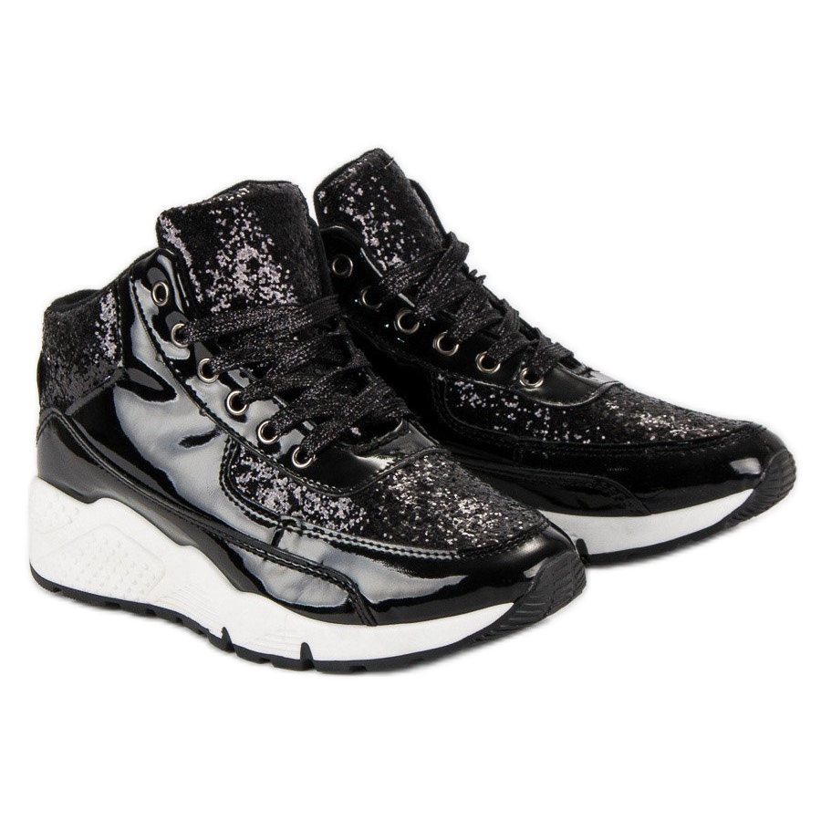 Les baskets noires à paillettes sont une proposition extrêmement élégante pour les femmes qui souhaitent allier confort sportif et accent tendance. Fabriquées en cuir écologique verni de haute qualité, ces chaussures attirent l'attention par leur design original et offrent un confort qui dure toute la journée. Grâce à des ajouts uniques comme des paillettes noires, ces baskets se démarquent des modèles traditionnels en offrant une touche de brillance et de glamour, parfaites en toute occasion.