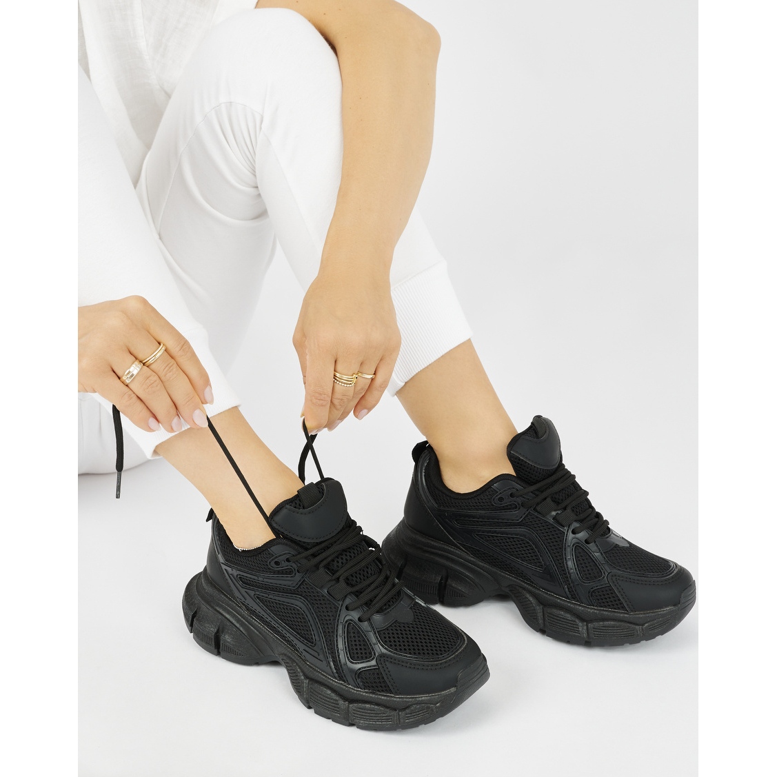 Détails: Baskets noires à semelle épaisse le noir