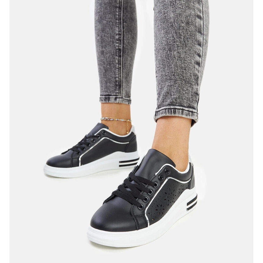 Les baskets noires ajourées à paillettes sont la quintessence du chic urbain et du confort. C'est une combinaison qui fait de ces chaussures en éco-cuir un élément indispensable dans la garde-robe de toute femme qui souhaite allier le confort au quotidien avec un accent à la mode. Les concepteurs du modèle 85-950 ont opté pour un profil bas des chaussures qui, associé à la fermeture à lacets, assure non seulement un superbe look, mais également un confort à chaque pas.