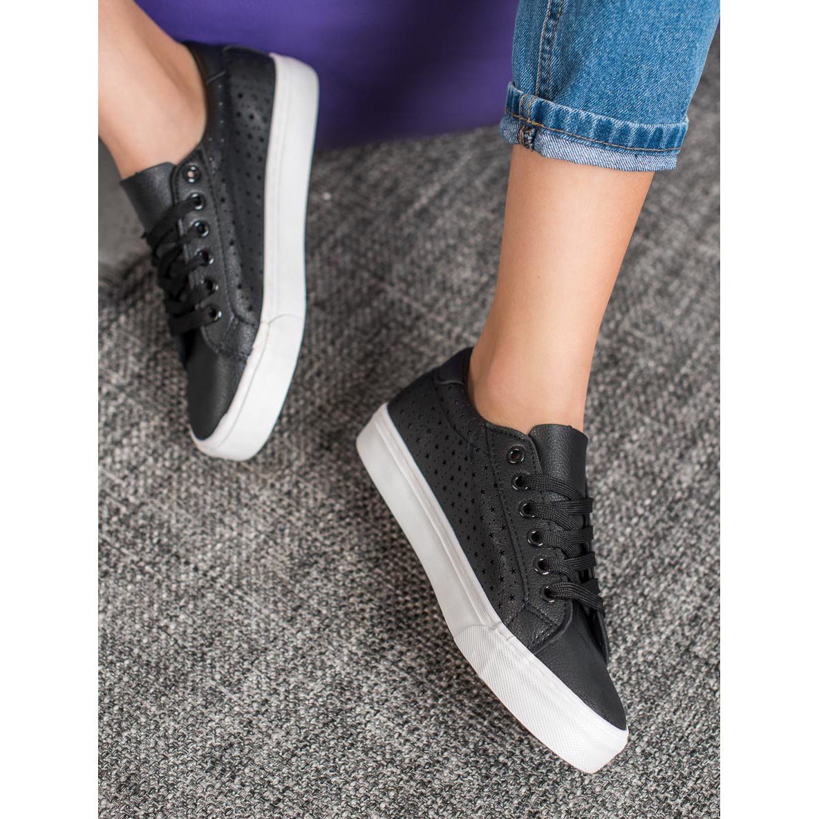 Détails: J. Star Baskets noires ajourées le noir
