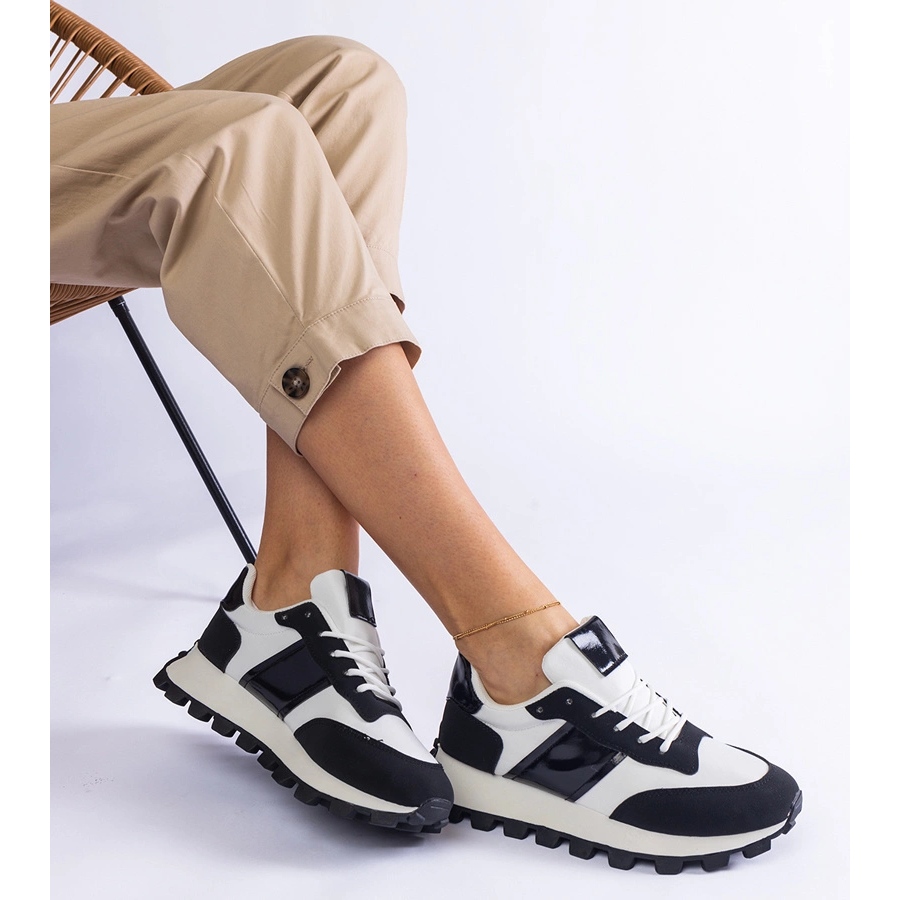 Les baskets noires avec un protecteur visible sont le choix parfait pour les femmes qui apprécient une combinaison de style et de confort. Ces chaussures modernes sont non seulement à la mode, mais aussi fonctionnelles. Fabriqués en cuir écologique de haute qualité, ils offrent un confort dans l'utilisation et leur nez rond vous permet de déplacer librement vos doigts. Le fermoir lacé permet un ajustement précis au pied, ce qui affecte le confort de la marche.
