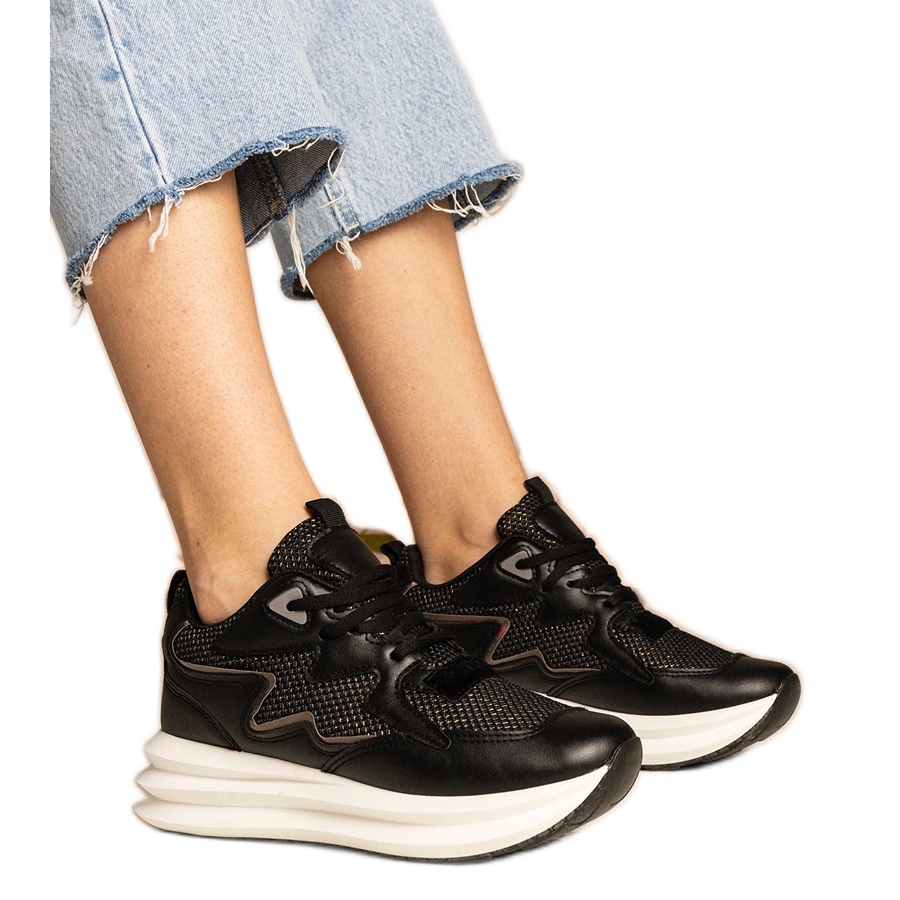 Nous présentons des baskets noires J026, qui s'intègrent parfaitement dans les dernières tendances de la mode et assurons le confort à chaque étape. Ces chaussures de sport pour femmes attirent l'attention grâce à leur design moderne, et l'élément holographique caractéristique leur donne un style unique.