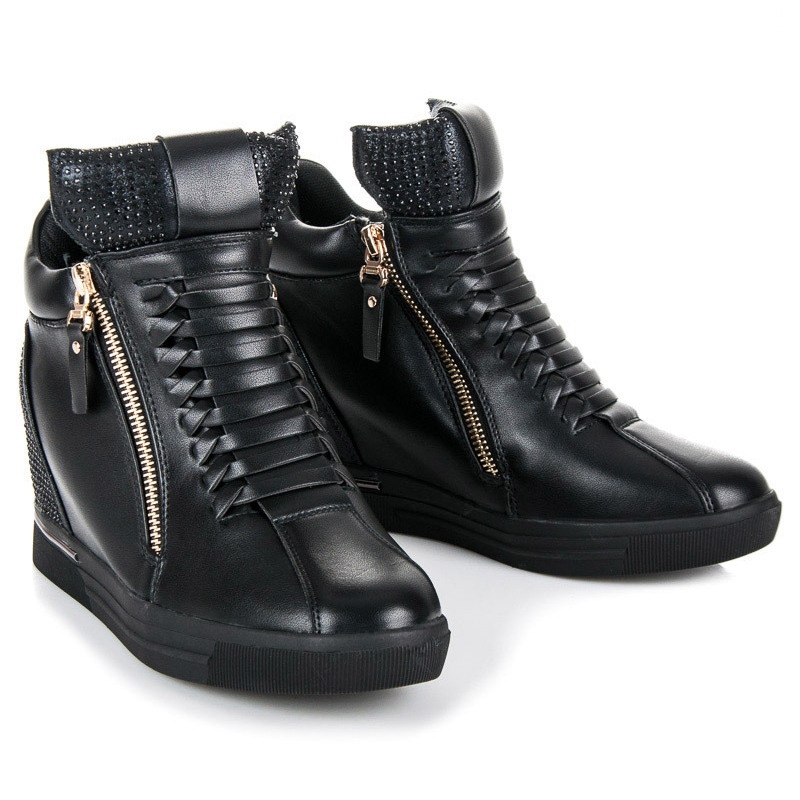 Grâce à la plateforme de 9 cm de hauteur, ces baskets galbent parfaitement la silhouette, soulignant les atouts de la silhouette féminine. Parfaits pour les journées plus froides, ils vous permettent de profiter à la fois du confort et d'un look tendance. Ces baskets noires sont un incontournable de chaque collection d'automne et s'adapteront parfaitement à de nombreux styles, du plus décontracté au plus élégant.
