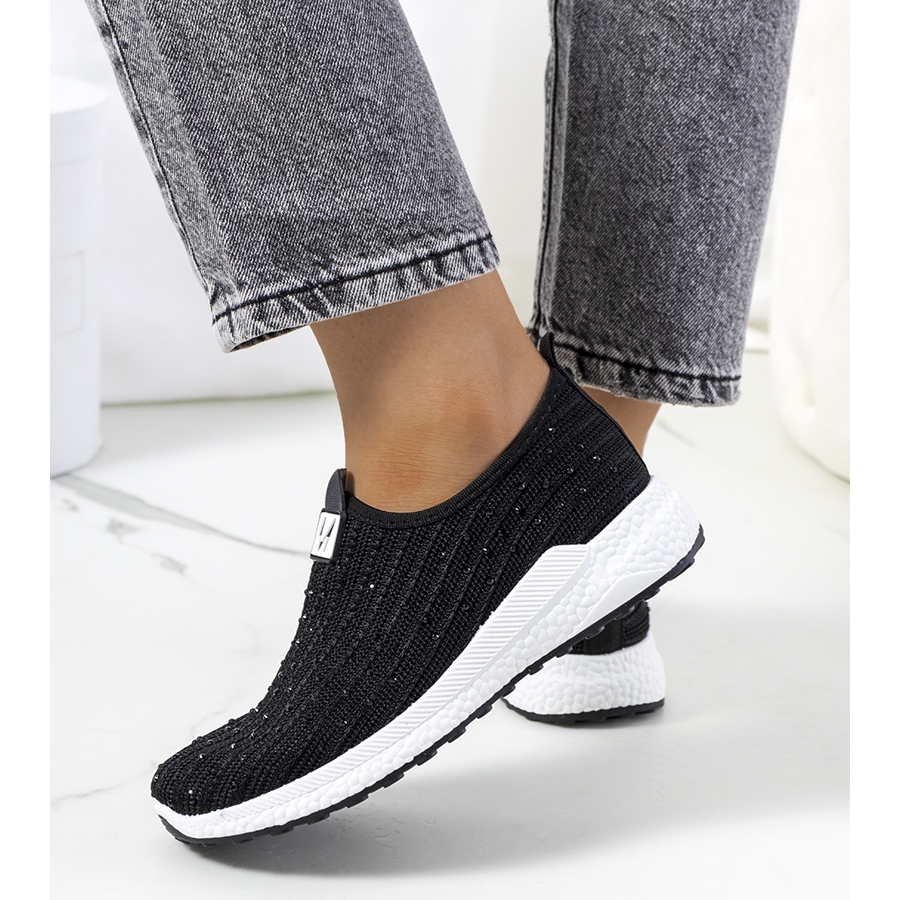 Les baskets noires avec Maasje Zircons (modèle TF2117) - doivent avoir cette saison! Une tige douce et matériale avec une coupe "chaussette" s'adapte parfaitement au pied, offrant un confort tout au long de la journée. La décoration de zircon douce ajoute de la brillance et de l'élégance, grâce à quelles baskets sont parfaits pour les stylisations décontractées et plus de sortie.