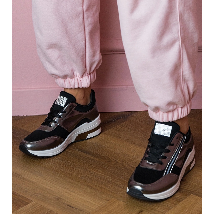 Ces chaussures de sport pour femmes sportives se distinguent par une coupe basse et un nez rond, ce qui garantit le confort de porter pendant de longues heures. Les baskets sont intégrées sur une plate-forme de 5 cm de haut, donnant à l'ensemble une figure un look légèrement sportif, mais aussi féminin. Fabriqués en matériau extérieur synthétique, ils sont non seulement durables, mais aussi faciles à prendre soin, ce qui signifie qu'ils vous accompagneront dans de nombreuses stylisations de tous les jours.