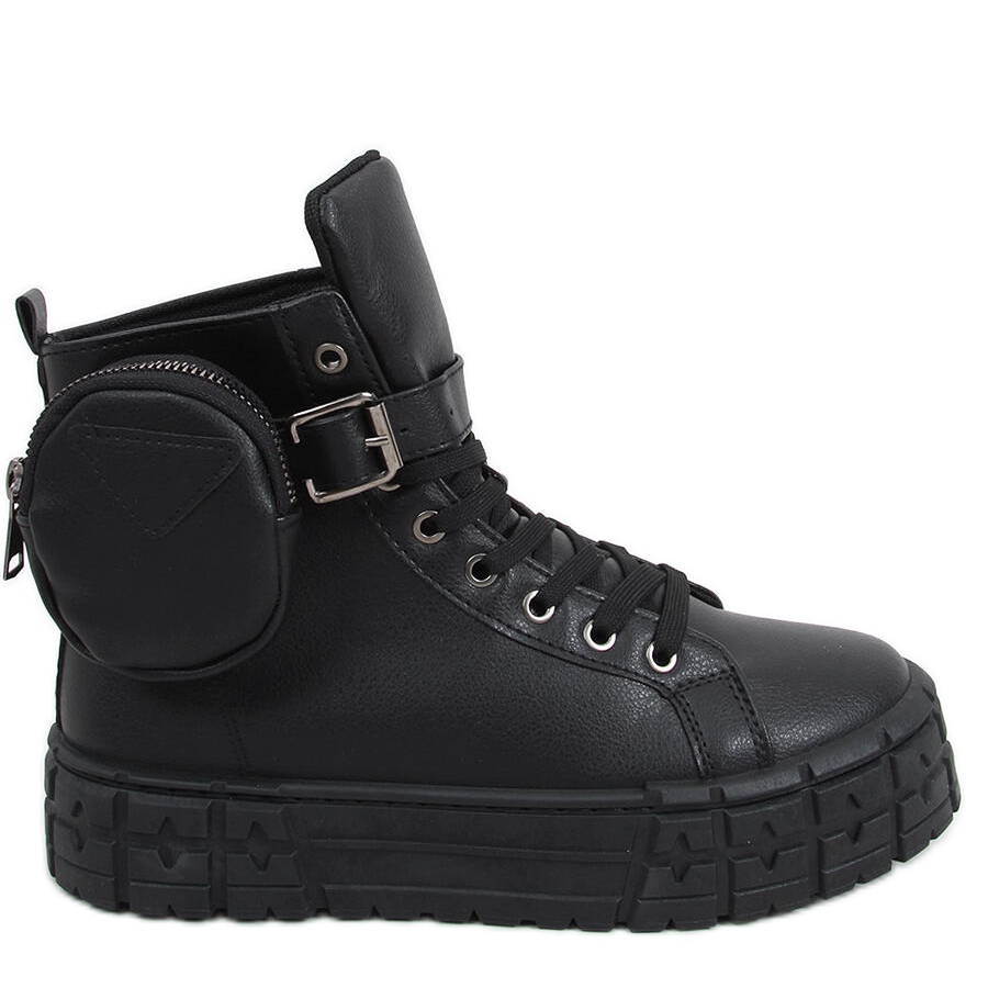 La semelle haute de 4 cm de haut assure un confort de port tout en ajoutant de l'élégance. L'intérieur des chaussures est doublé de tissu, ce qui les rend confortables même pendant de longues périodes d'utilisation. Fabriquées en cuir écologique, ces baskets noires sont non seulement superbes, mais sont également respectueuses de l'environnement.