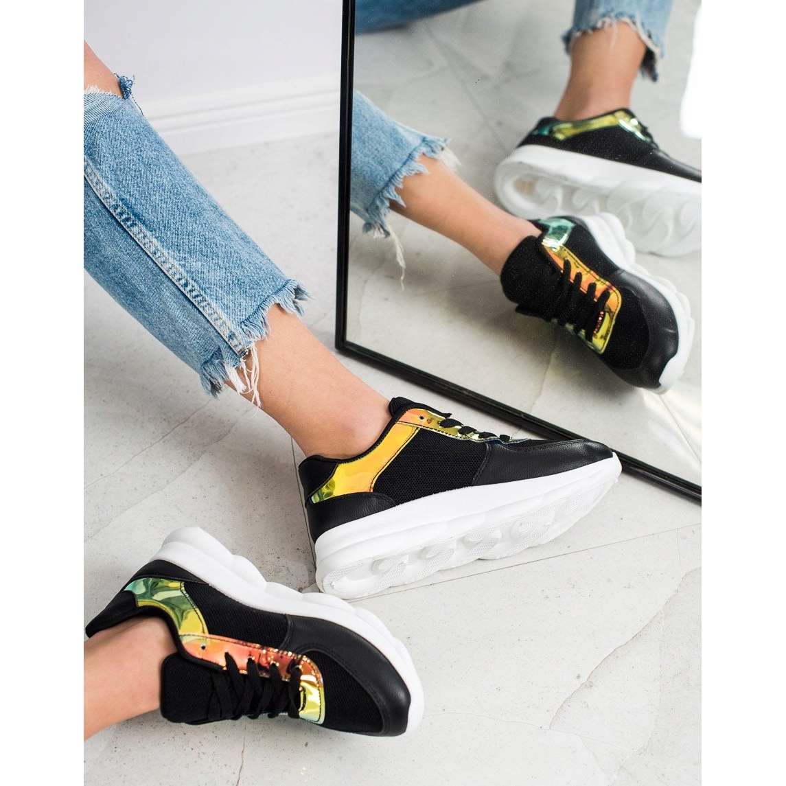 Ces baskets basses et sportives seront un complément parfait au style de tous les jours. Sans motif, d'une couleur noire classique, ils se combinent facilement aussi bien avec des jeans qu'avec des robes plus décontractées. Les baskets noires classiques SHELOVET sont un incontournable de la garde-robe de chaque femme, parfaites pour un usage quotidien, alliant style frais et fonctionnalité.