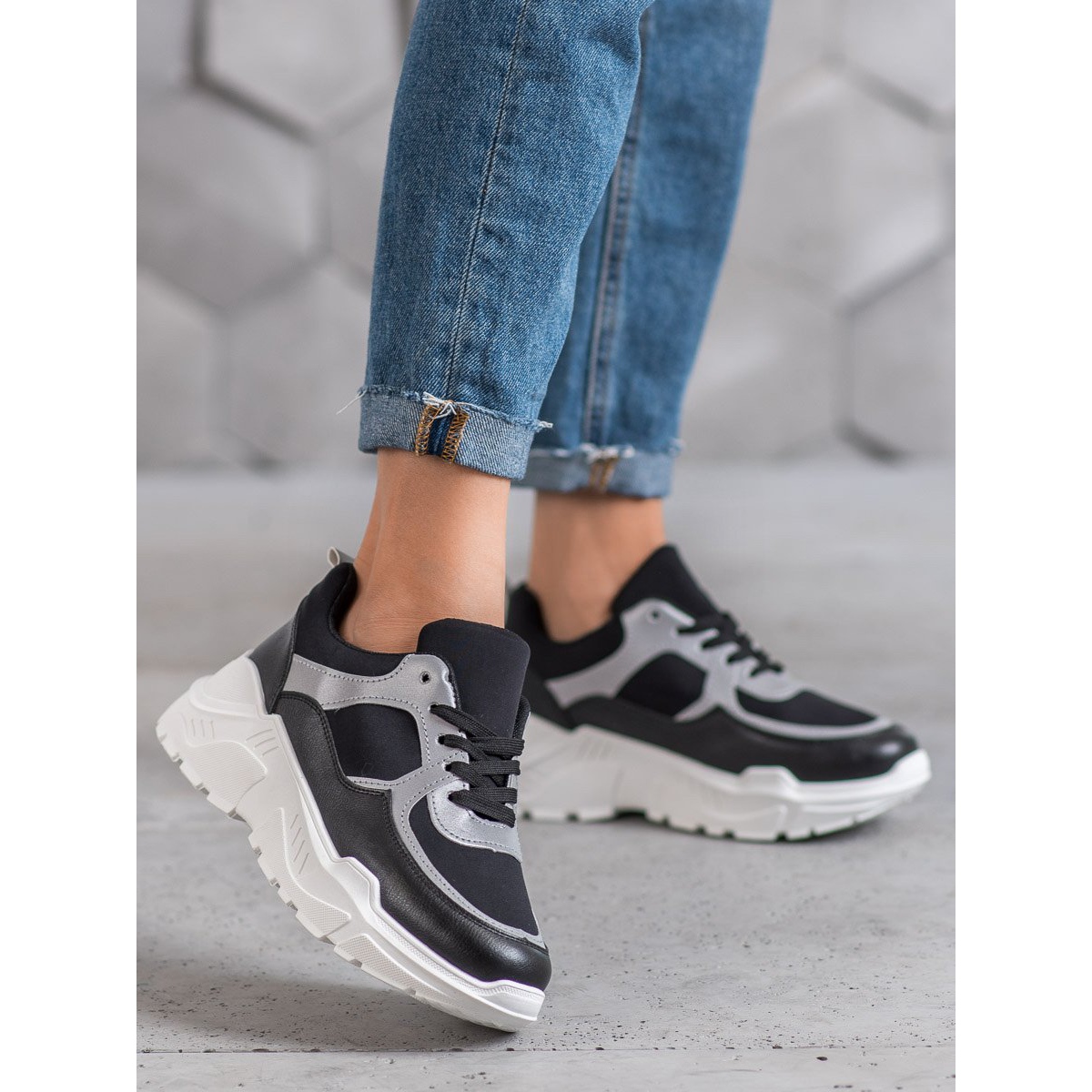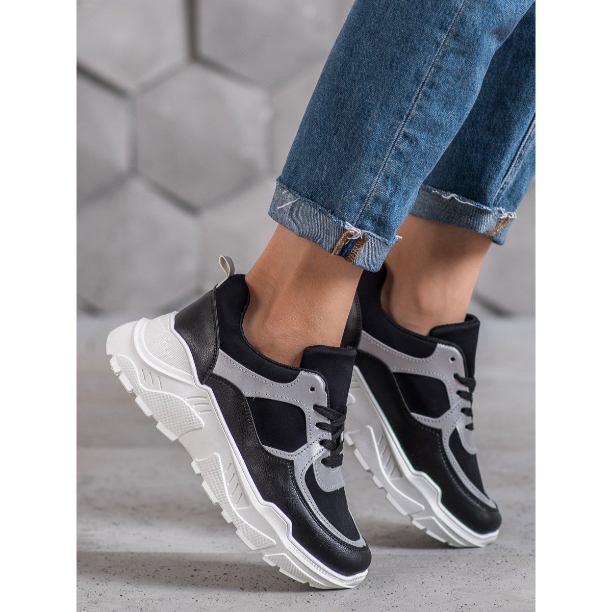 Découvrez des classiques dans une version moderne avec les baskets SHELOVET pour femme en noir. Ces chaussures uniques ont été créées pour les femmes qui souhaitent allier simplicité et dernières tendances de la mode. Grâce à l'utilisation de matières textiles de haute qualité et de simili cuir, les baskets sont non seulement élégantes, mais aussi confortables.