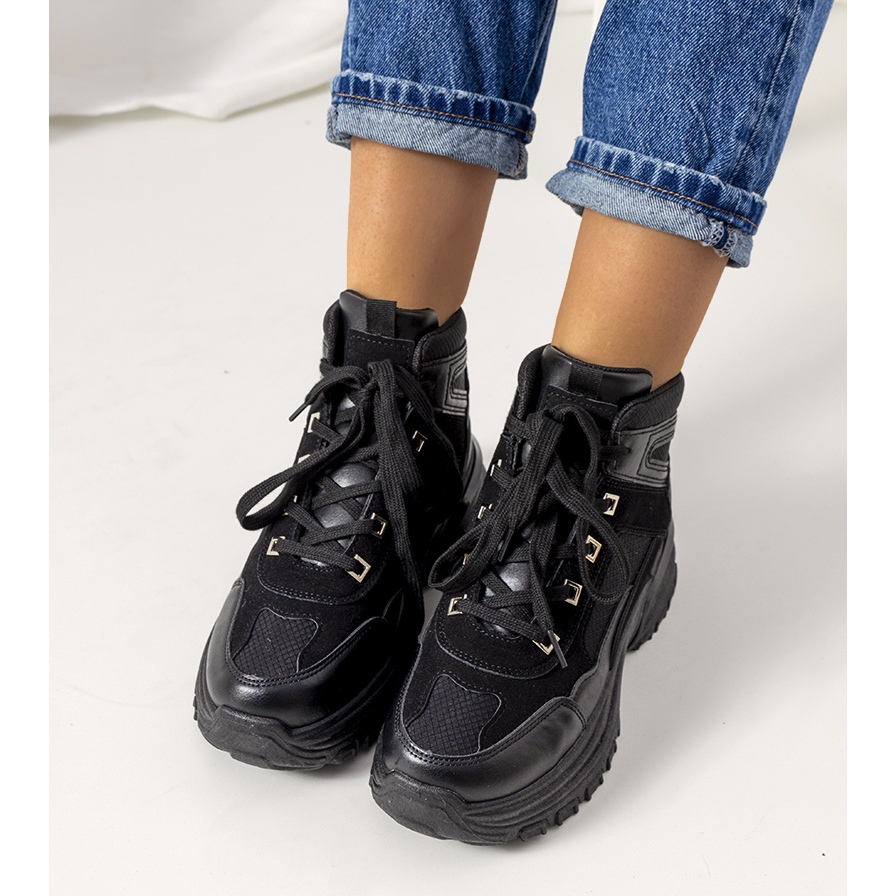 Les baskets montantes noires Muncy sont le choix parfait pour toute femme à la mode qui souhaite allier confort et dernières tendances. Ces chaussures élégantes séduisent non seulement par leur esthétique, mais aussi par leur finition soignée. La tige en cuir suédé écologique, complétée par des inserts en suède écologique, rend les baskets non seulement belles, mais aussi respectueuses de l'environnement.