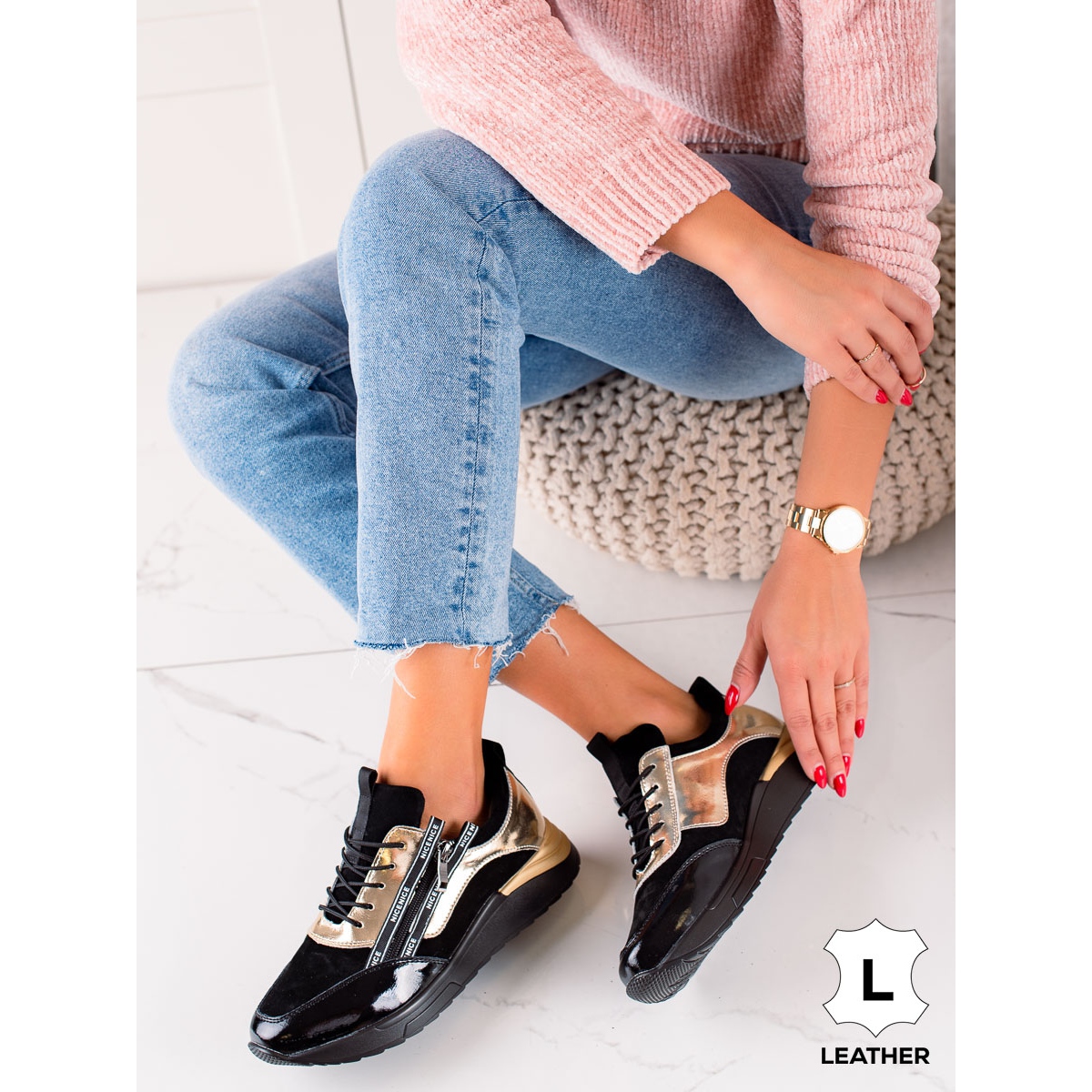 Détails: W. Potocki Baskets noires et dorées en cuir Potocki le noir d'or