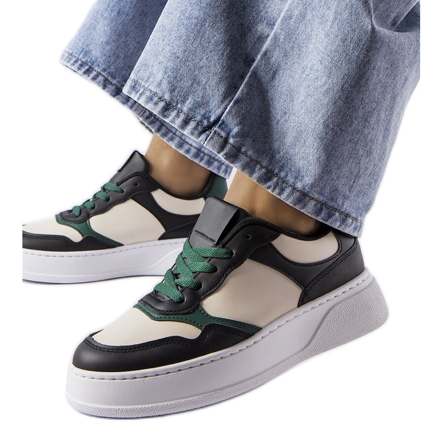 Détails: Baskets noires et vertes sur la plateforme Baron