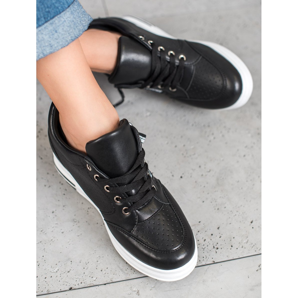 Nous vous présentons les baskets pour femmes Weide Evolutions dans une élégante couleur noire, qui allient style, confort et fonctionnalité. Fabriqués dans un matériau semblable à du cuir de la plus haute qualité, ils constituent un excellent choix pour un usage quotidien et pour un style sportif. Grâce au laçage innovant, ce modèle s'adapte facilement au pied, ce qui assure un confort même en cas d'utilisation prolongée.