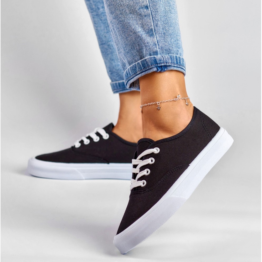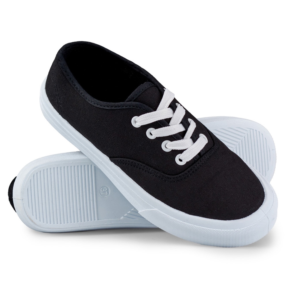 Des baskets textiles classiques dans des couleurs noires universelles - parfaites tous les jours au printemps / été. Des chaussures basses à lacets avec une semelle en caoutchouc assurent le confort et une bonne adhérence, et une coupe simple et absolu peut facilement correspondre à de nombreux styles.