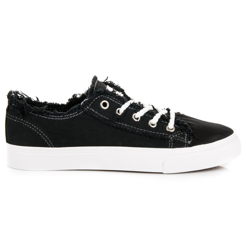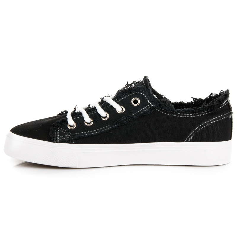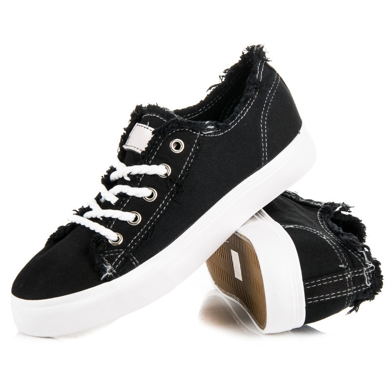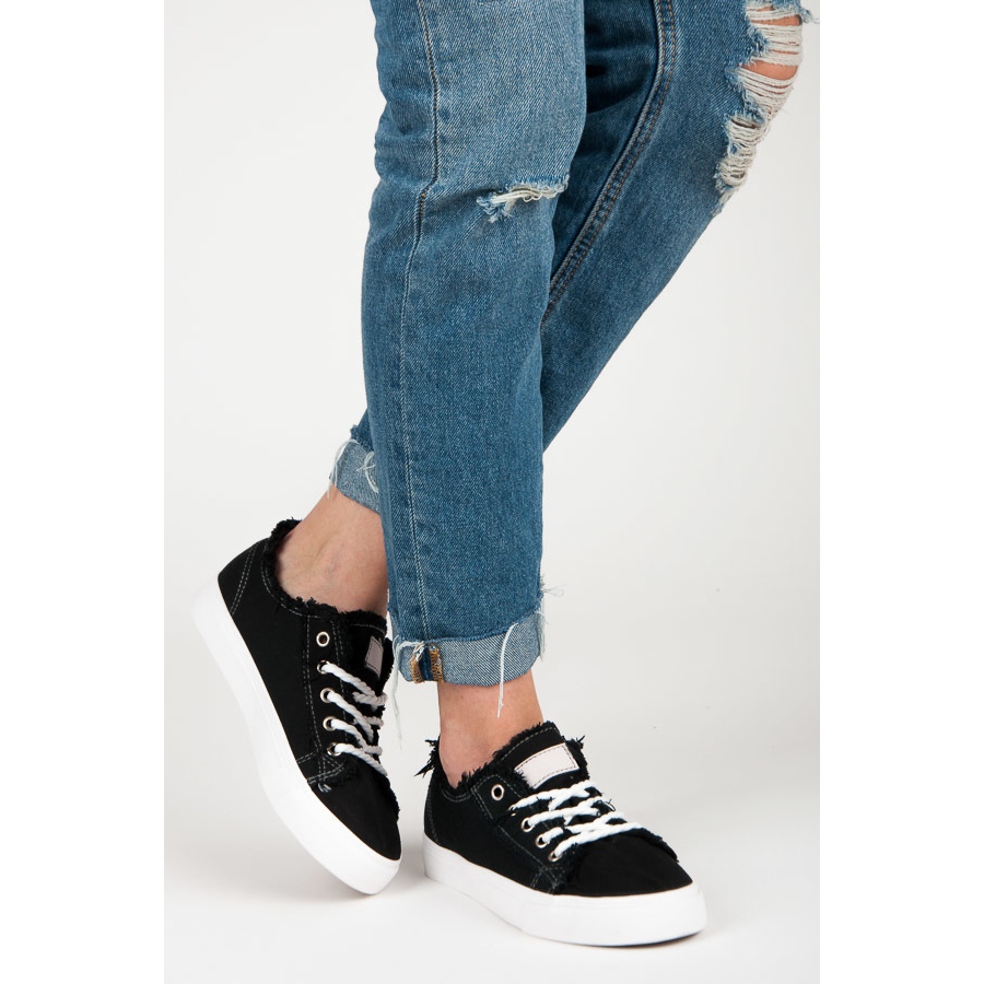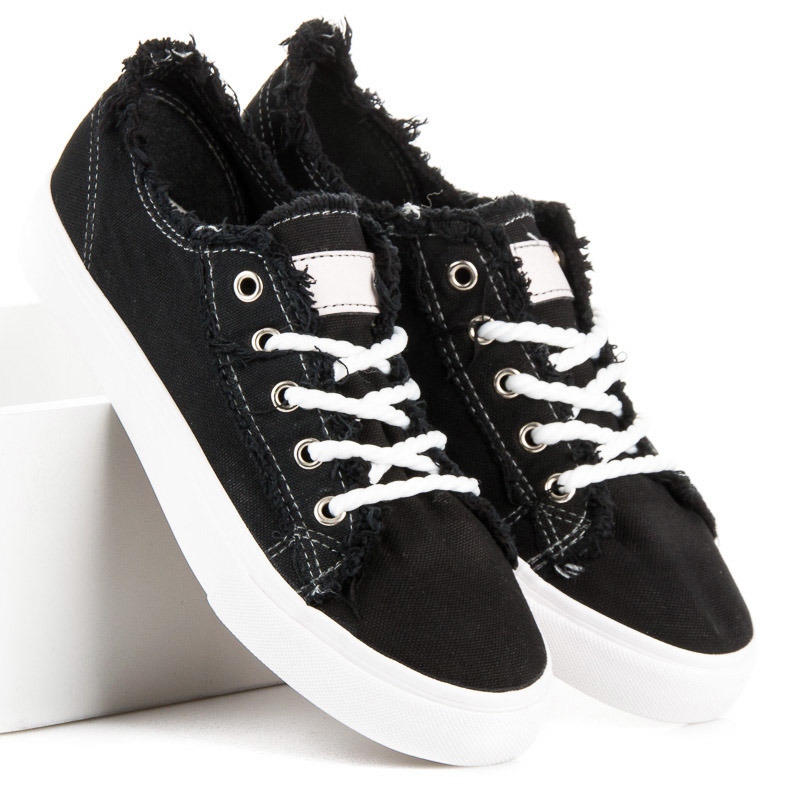 Nous vous présentons un modèle unique de baskets noires qui combinent un design classique avec des accents modernes. Ces chaussures extrêmement confortables sont le choix parfait pour un usage quotidien et s'adaptent à tous les styles. La finition effilochée du matériau ajoute de l'originalité et le contrefort de talon souple assure un confort maximal lors du port.