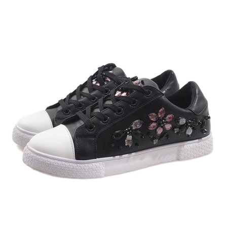Les baskets noires K1709 du célèbre fabricant de chaussures KeeShoes sont le choix parfait pour les femmes qui apprécient à la fois le classique et l'originalité. Ces baskets élégantes combinent un noir élégant avec des décorations accrocheuses sous forme de fleurs faites de pierres colorées, ce qui les distingue des autres modèles.