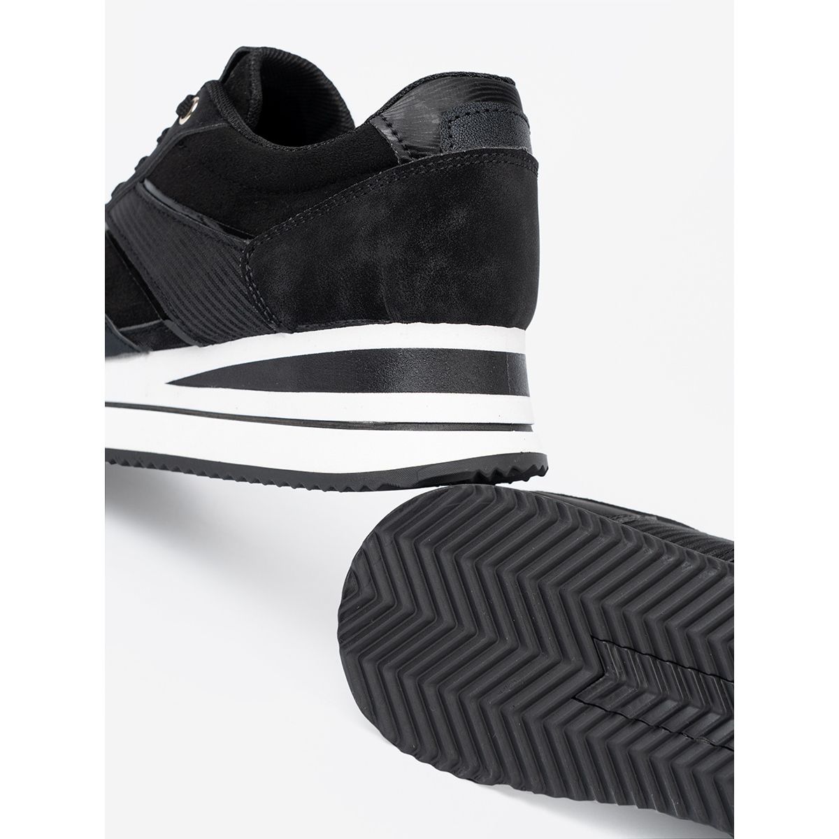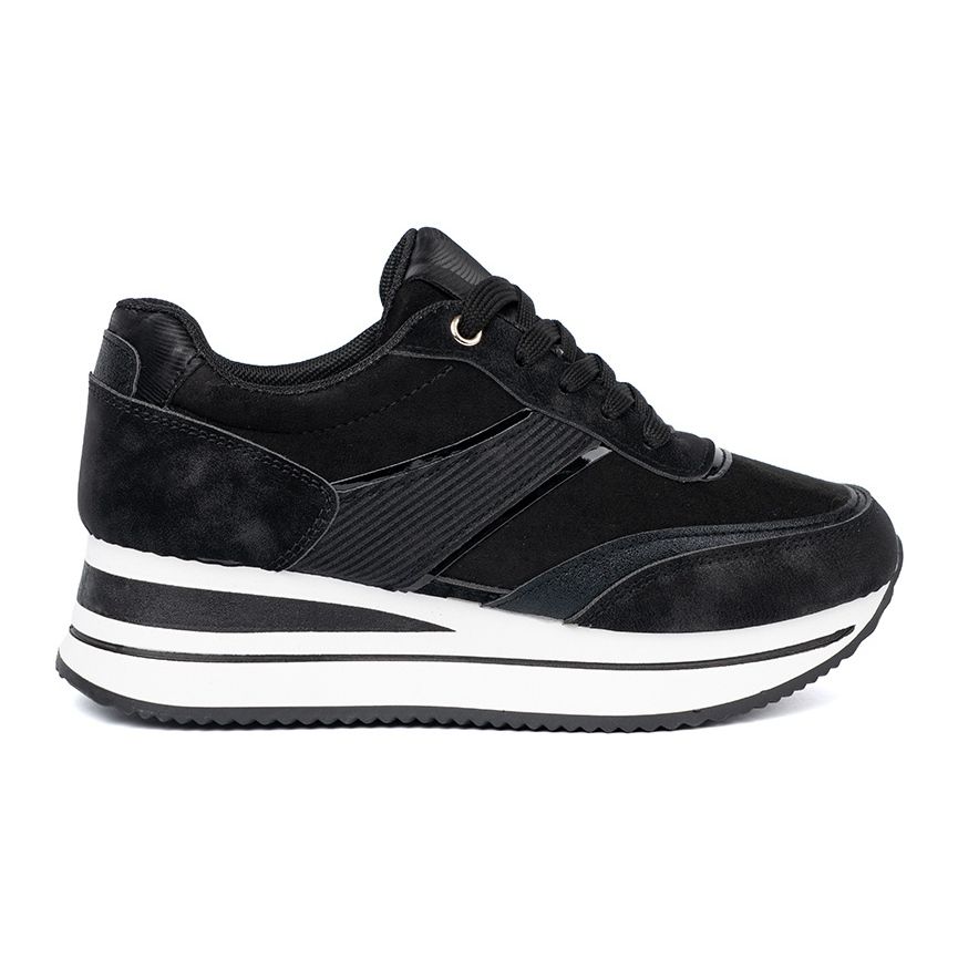 Les baskets ont un talon doux et doux et un nez rond, ce qui garantit le confort toute la journée. Grâce à la plate-forme de 4,5 cm de haut, vous gagnez des centimètres supplémentaires sans abandonner la commodité. La semelle en plastique récupérée garantit une excellente adhérence sur diverses surfaces, ce qui en fait le choix parfait pour l'automne, le printemps et l'été.