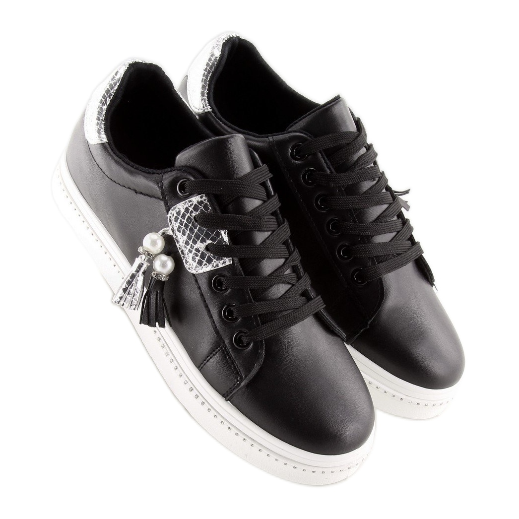 Découvrez un style unique avec les baskets noires pour femme 88038 BLACK/WHITE, qui deviendront à coup sûr un élément indissociable de votre garde-robe. Leur coupe classique combinée à des franges tendance ornées de perles ajoute une touche d'élégance à n'importe quel style. La bordure subtile avec des strass autour de la semelle ajoute une touche de glamour, ce qui les rend parfaites pour les tenues décontractées comme plus élégantes.