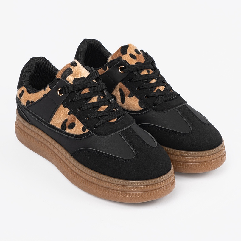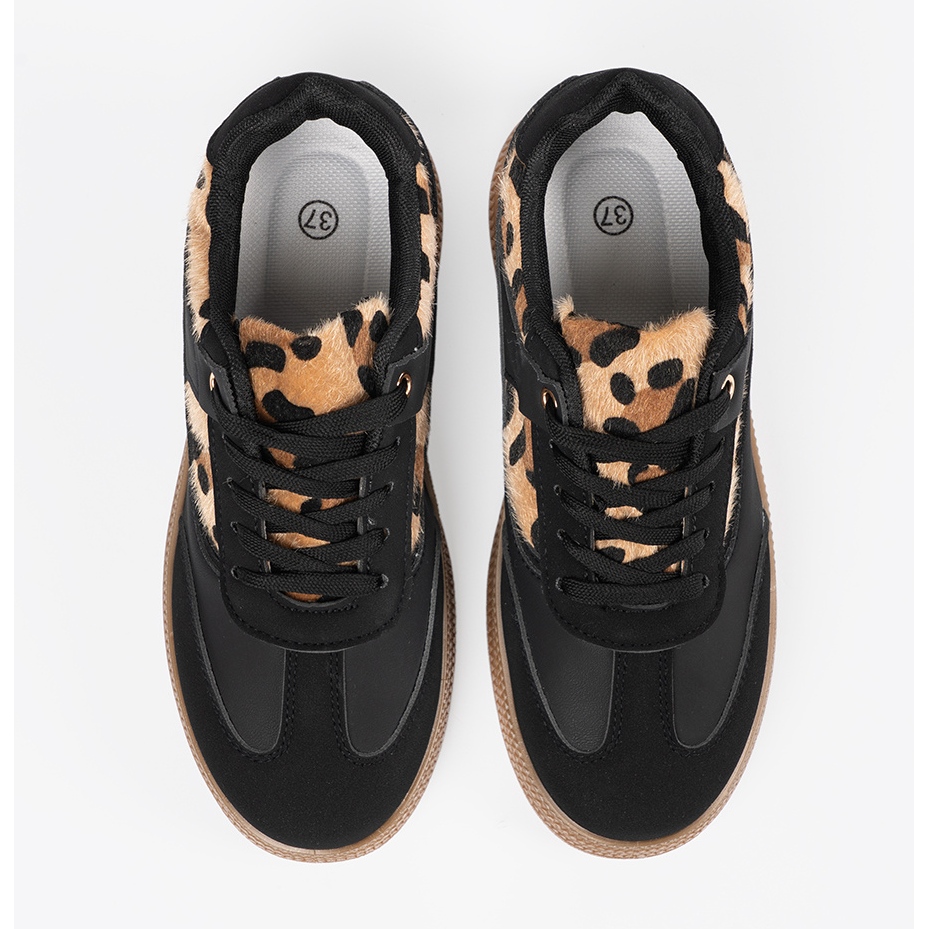 Détails: Baskets noires pour femmes avec inserts imprimés léopard le noir