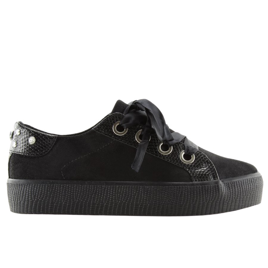 Découvrez un style unique avec les baskets noires pour femmes BS096 BAS-1 Black, qui allient élégance et confort. Ces magnifiques baskets ont été soigneusement confectionnées en daim écologique scintillant, ce qui les rend non seulement à la mode, mais aussi respectueuses de l'environnement. Leur coupe classique a été enrichie des dernières tendances, notamment des rubans à la place des lacets traditionnels, qui ajoutent originalité et brillance subtile.