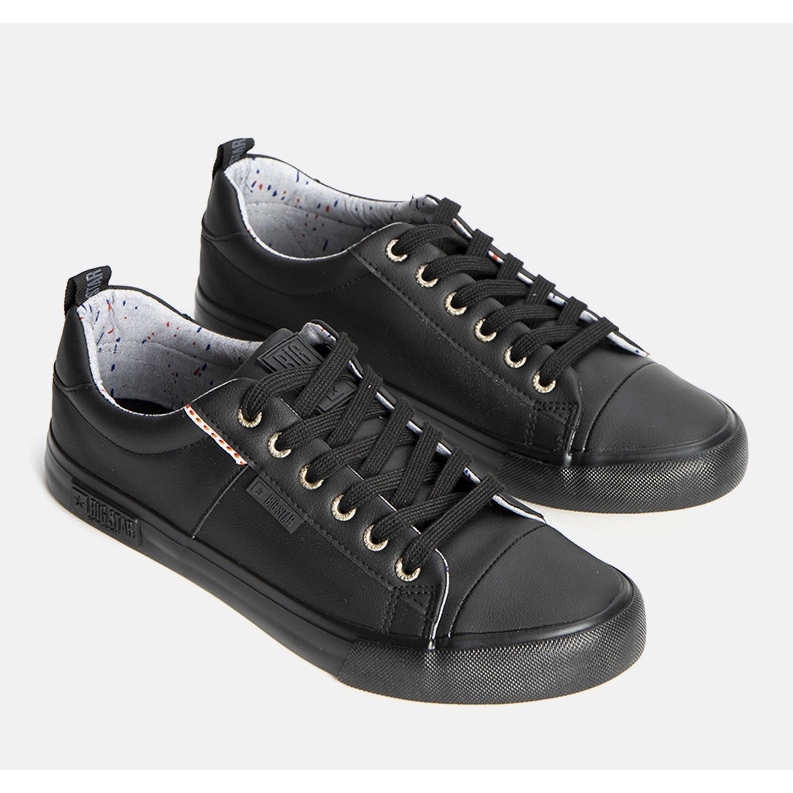 Black Big Star KK174004 Sneakers - Classique, confortable et universel. La coupe à profil faible fonctionnera dans les stylifications de tous les jours: pour les jeans, le chino ou les shorts courts. La partie extérieure du cuir écologique donne un aspect élégant, et la semelle intérieure textile assure le confort toute la journée.