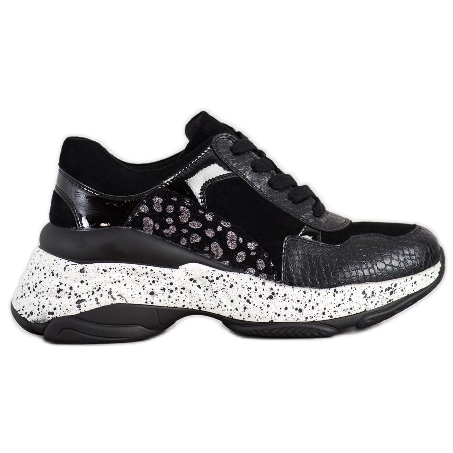 Les baskets SDS noires sont un choix parfait pour toutes les saisons, aussi bien lors des journées les plus froides de l'automne et de l'hiver qu'au printemps et en été. Leur motif animalier minimaliste leur donne un caractère tendance, et leur faible hauteur et leur plateforme de 7 cm les rendent confortables et faciles à porter toute la journée.