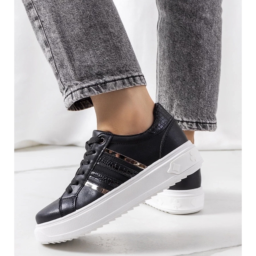 Fabriqués en matériau de haute qualité, les tiges adhèrent parfaitement au pied, garantissant le confort de porter toute la journée. Une application de chaîne décorative graisseuse est un véritable succès de cette saison, ce qui ajoute un caractère unique aux chaussures. Les baskets correspondent à de nombreuses tenues - du décontracté à plus élégant, ce qui en fait un élément universel de vêtements.