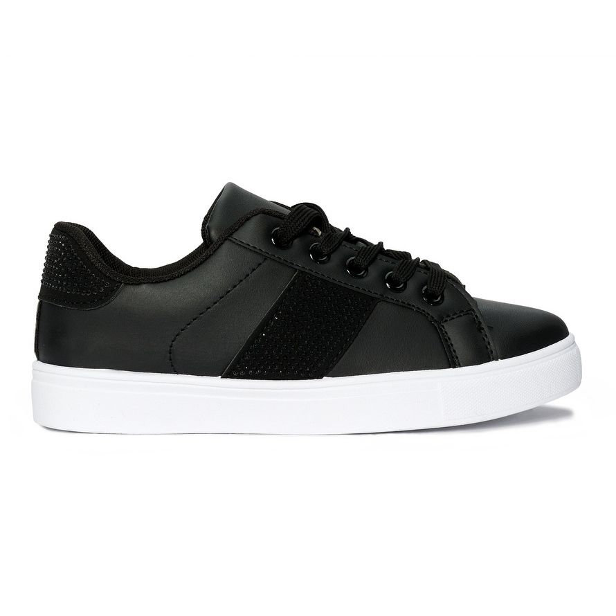 Les baskets noires sont un incontournable absolu dans chaque garde-robe. Leur couleur universelle, leur cuir écologique et un accent sensuel sous la forme de zircon le font parfaitement s'adapter à des tenues décontractées et plus élégantes. Un orteil rond et un confort et un soutien de garantie à talon doux construit pendant les activités quotidiennes.