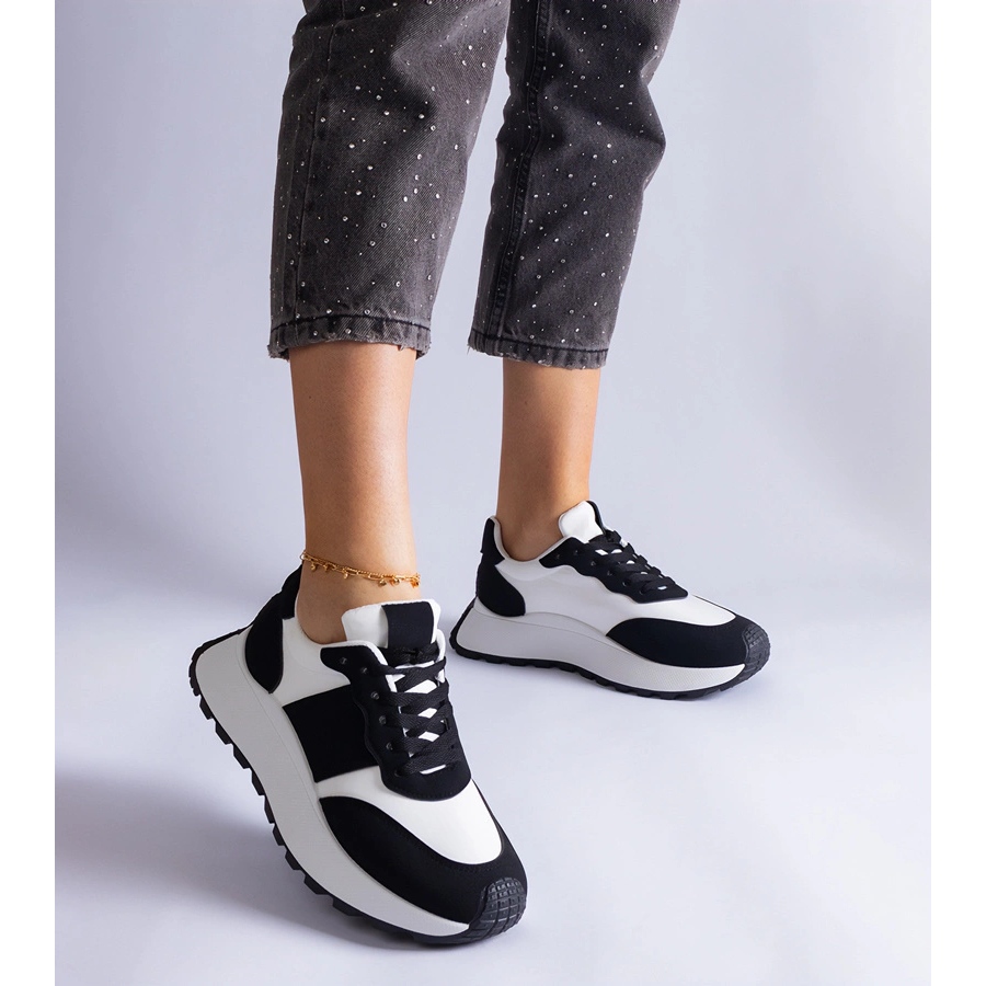 Découvrez l'élégance et la modernité avec des baskets noires sur l'autre plateforme. Ces chaussures élégantes sont un excellent choix pour chaque femme active qui veut combiner la mode et le confort. Grâce à sa basse hauteur de la plate-forme de 3,5 cm, ces baskets offrent la commodité de porter tout au long de la journée, et en même temps soulignent subtilement la figure.