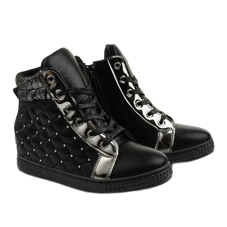 Nous vous présentons les baskets compensées noires R468-2 d'une marque renommée, qui allient parfaitement style et confort. Ces chaussures uniques sont dédiées aux femmes qui apprécient l'apparence à la mode et le confort de port. Le cuir écologique noir leur confère un caractère élégant, et des strass supplémentaires apportent une note de modernité et d'originalité.