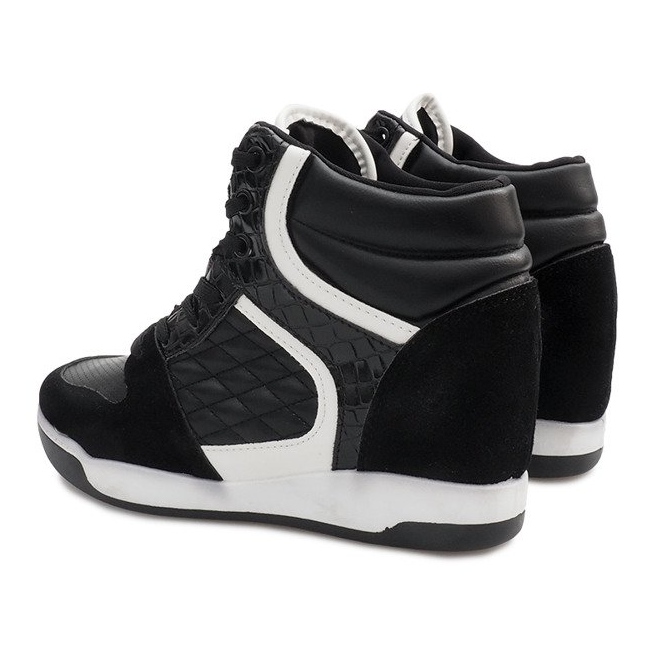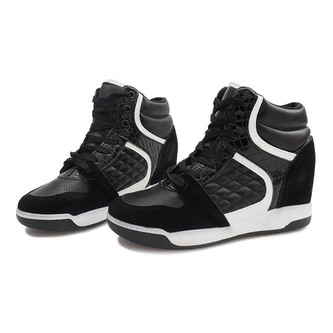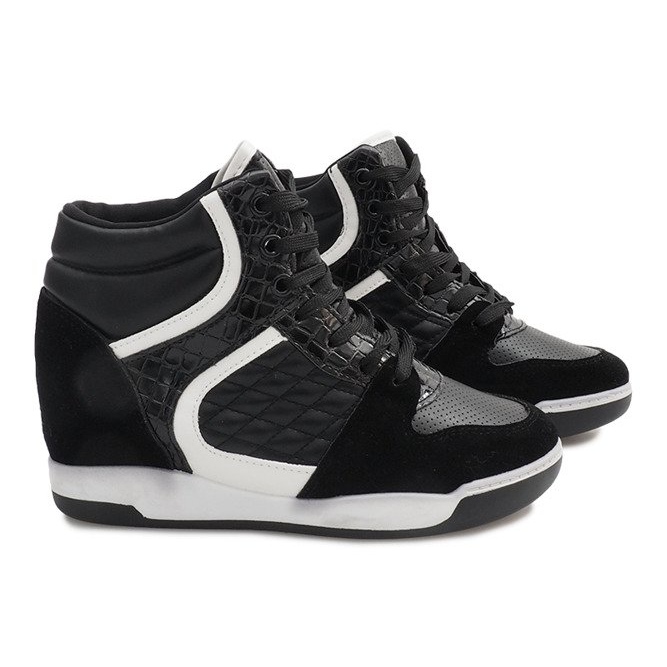 Les baskets compensées noires K-26 sont la combinaison parfaite de confort et de style qui attirera certainement l'attention de toutes les femmes ! Fabriquées dans un matériau semblable à du cuir de haute qualité avec différentes textures, ces chaussures sont extrêmement élégantes. Leurs couleurs noires classiques ont été enrichies de subtils inserts blancs qui leur confèrent un caractère moderne.