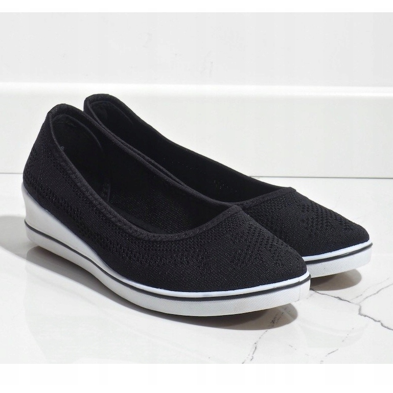 Les chaussures sont équipées d'une cale stable de 4 centimètres, qui ajoute non seulement quelques centimètres de hauteur, mais assure également un confort au quotidien. La semelle en caoutchouc blanc lisse contraste avec la tige noire, ce qui crée un effet visuel tendance et moderne. De plus, la plateforme est ornée d'une fine bande noire, qui souligne le caractère élégant de ce modèle.