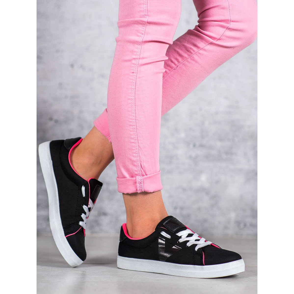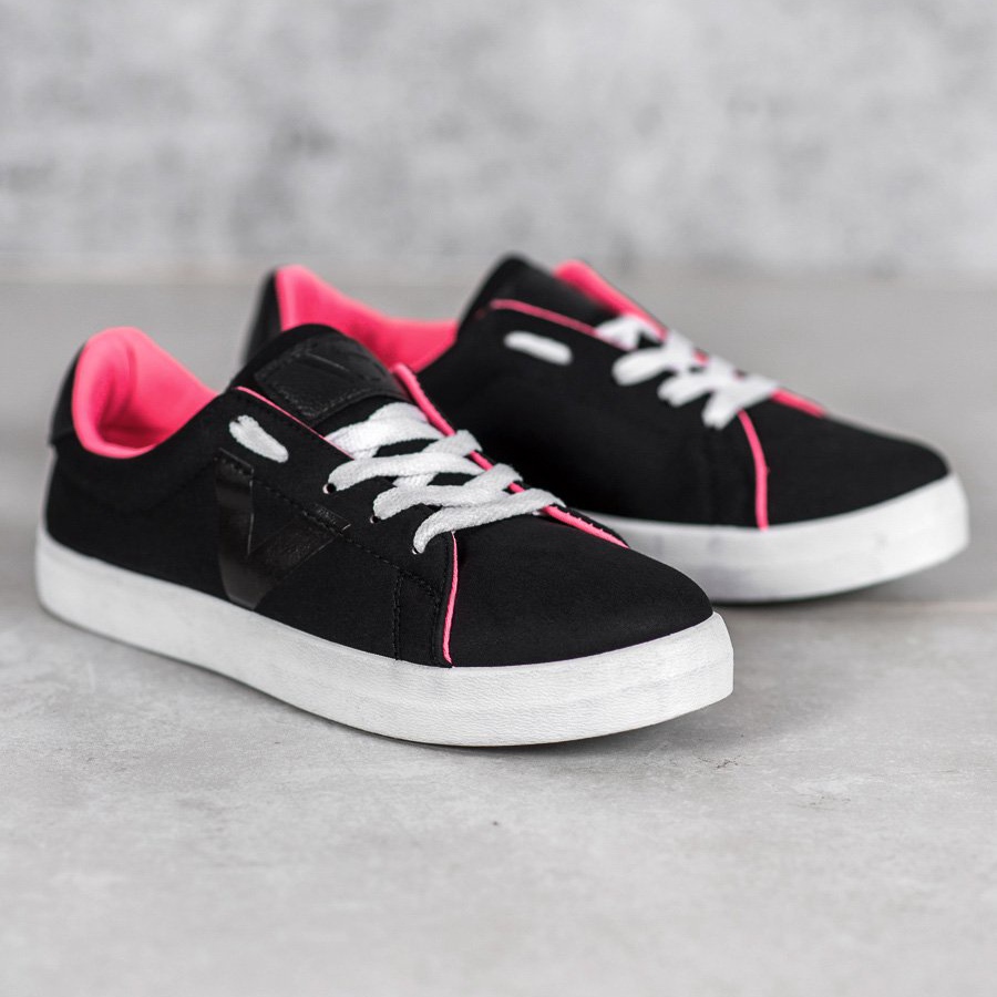 Les baskets VICES noires ont un bout rond et un talon intégré et souple, ce qui les rend non seulement élégantes, mais surtout confortables. La fermeture à lacets permet un ajustement parfait au pied, et la semelle avec bande de roulement en plastique assure une bonne adhérence et stabilité.