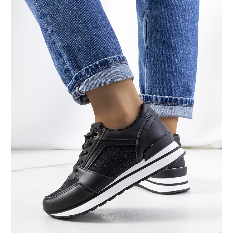Les baskets noires Zarema sont un choix parfait pour les femmes qui apprécient l'apparence à la mode et le confort au quotidien. Ces baskets élégantes complèteront parfaitement les styles décontractés, ajoutant un peu de brillance subtile grâce à un délicat accent de paillettes.