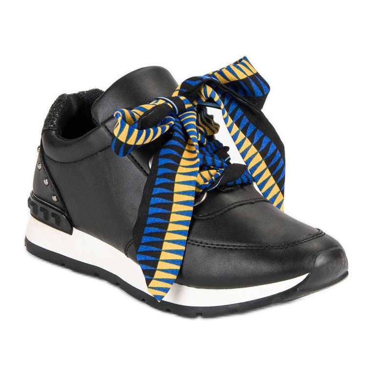 Une semelle plate avec bande de roulement garantit stabilité et traction même dans des conditions difficiles, ce qui en fait un choix idéal pour toutes les saisons. Un laçage élégant avec des rubans colorés ajoute de l'originalité aux chaussures, et des clous brillants et des paillettes noires au-dessus du talon ajoutent une touche tendance qui vous permettra de vous démarquer dans la foule.