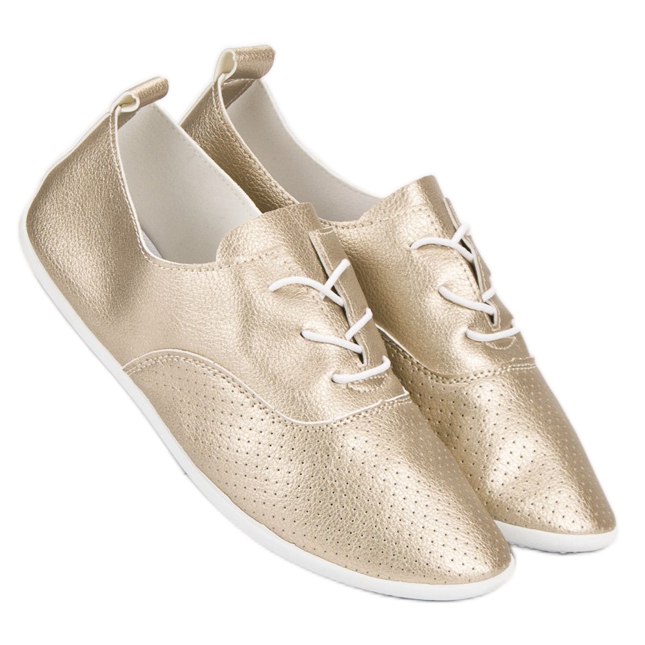 Découvrez un style parfait au quotidien avec nos baskets à lacets dorées, qui sont le choix parfait pour les femmes modernes et actives. Fabriquées à partir de cuir écologique de la plus haute qualité, ces chaussures à la mode sont non seulement uniques, mais respectent également l'environnement.