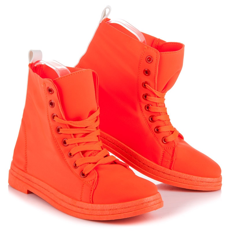 Les baskets orange fluo de la marque Small Swan sont le choix parfait pour les personnes qui apprécient le confort et le style. Ces baskets montantes, fermées par des lacets, sont conçues pour la saison été comme hiver, s'adaptant parfaitement au style de tous les jours. Leur couleur orange intense attire l'attention et ajoute de l'énergie à n'importe quelle tenue, et grâce à leur design simple et sans motif, ils s'accordent parfaitement avec divers éléments de garde-robe.